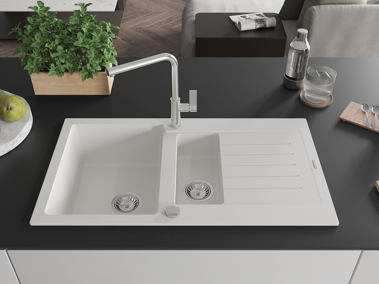 Повърхността на мивката е устойчива на петна и обезцветяване, благодарение на които е лесно да се почиства и запазва цвета си за дълго време. Естетически и практически допълващи всяка кухня.