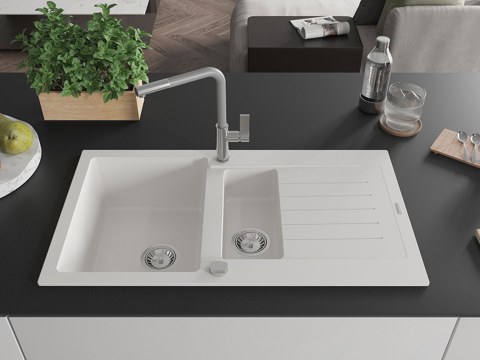 Повърхността на мивката е устойчива на петна и обезцветяване, благодарение на които е лесно да се почиства и запазва цвета си за дълго време. Естетически и практически допълващи всяка кухня.