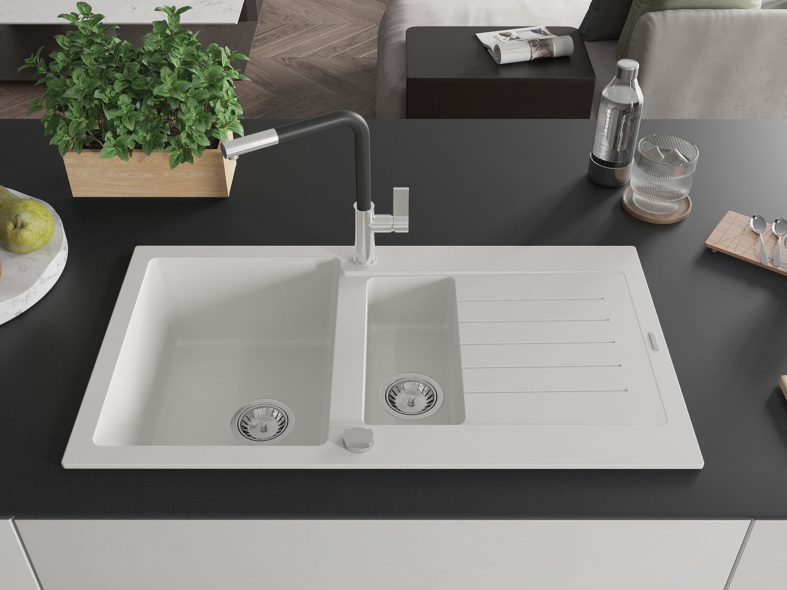 Повърхността на мивката е устойчива на петна и обезцветяване, благодарение на които е лесно да се почиства и запазва цвета си за дълго време. Естетически и практически допълващи всяка кухня.