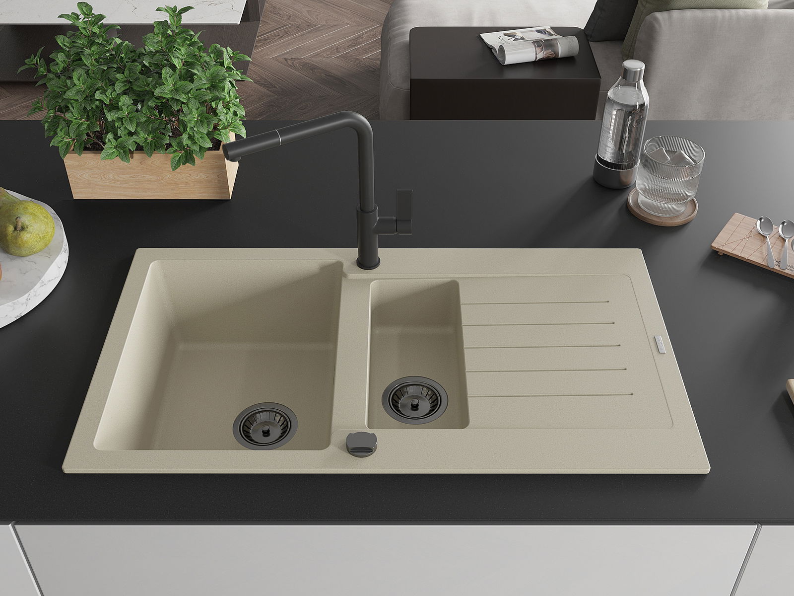 Мивката е направена от висококачествен гранит. Това е елегантно и най -вече практично допълнение към всяка кухня, независимо от нейния стил. Висококачествената и гранитна издръжливост осигуряват много години употреба.