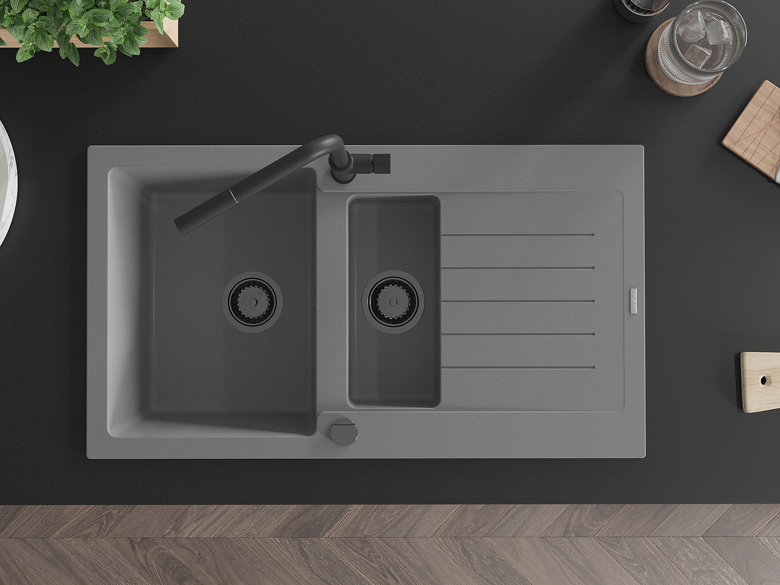 Мивката е направена от висококачествен гранит. Това е елегантно и най -вече практично допълнение към всяка кухня, независимо от нейния стил. Висококачествената и гранитна издръжливост осигуряват много години употреба.
