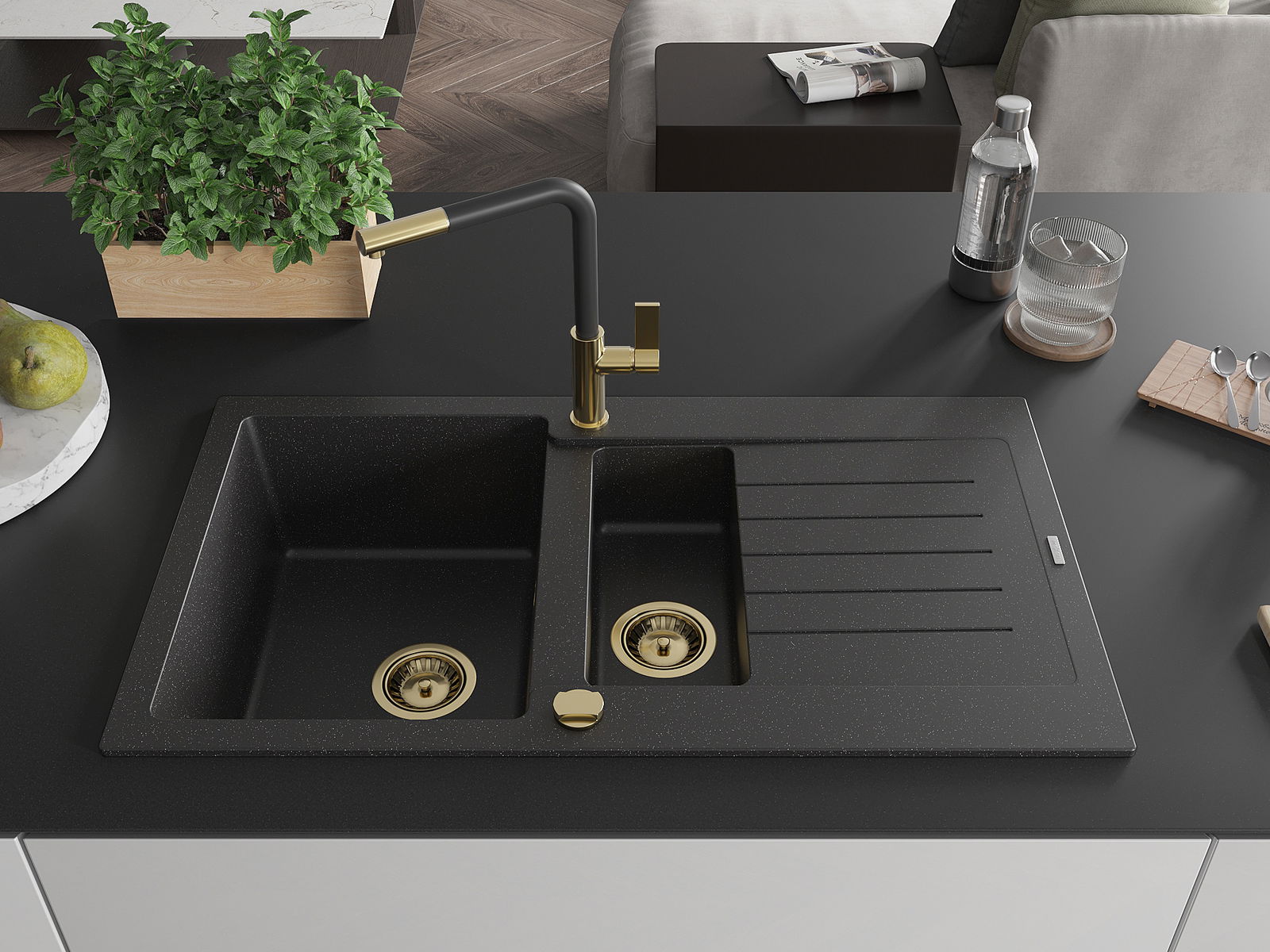Мивката е направена от висококачествен гранит. Това е елегантно и най -вече практично допълнение към всяка кухня, независимо от нейния стил. Висококачествената и гранитна издръжливост осигуряват много години употреба.