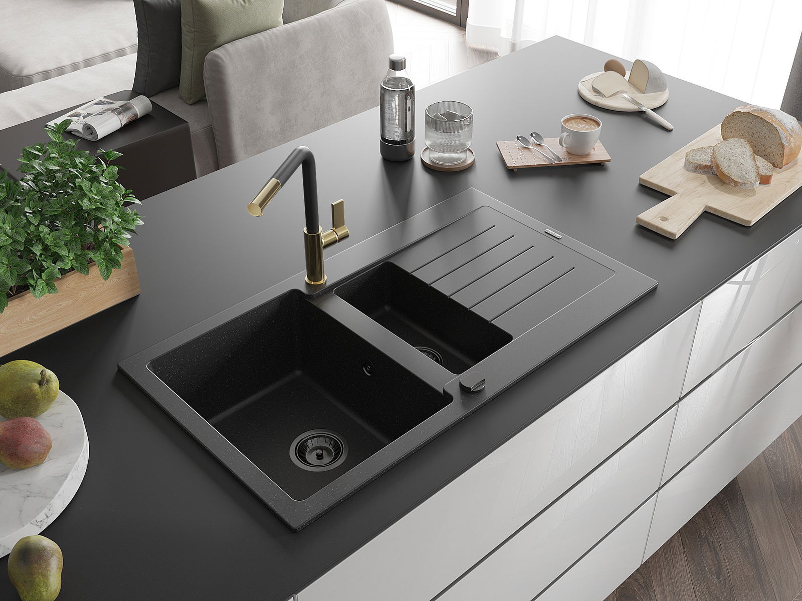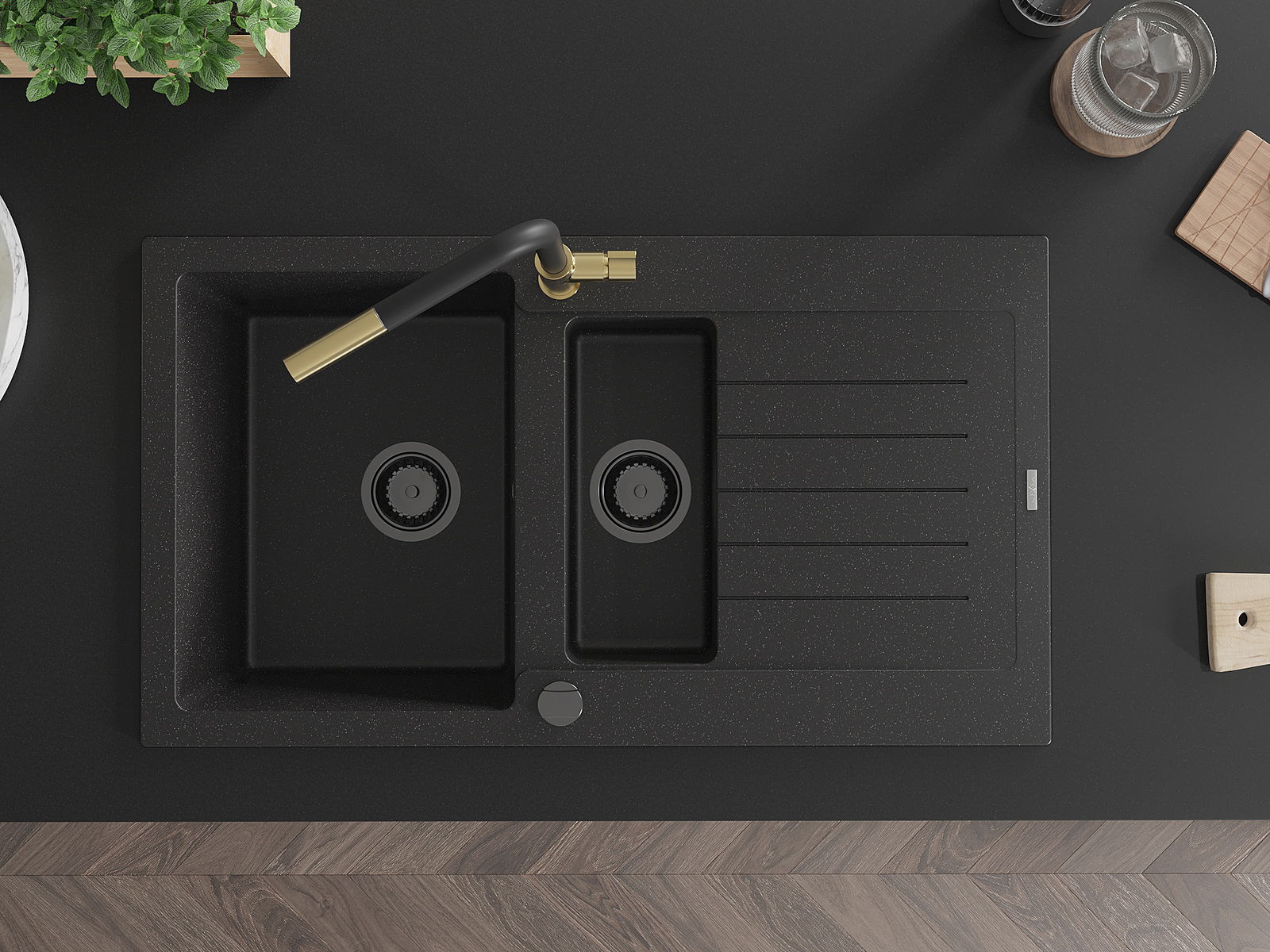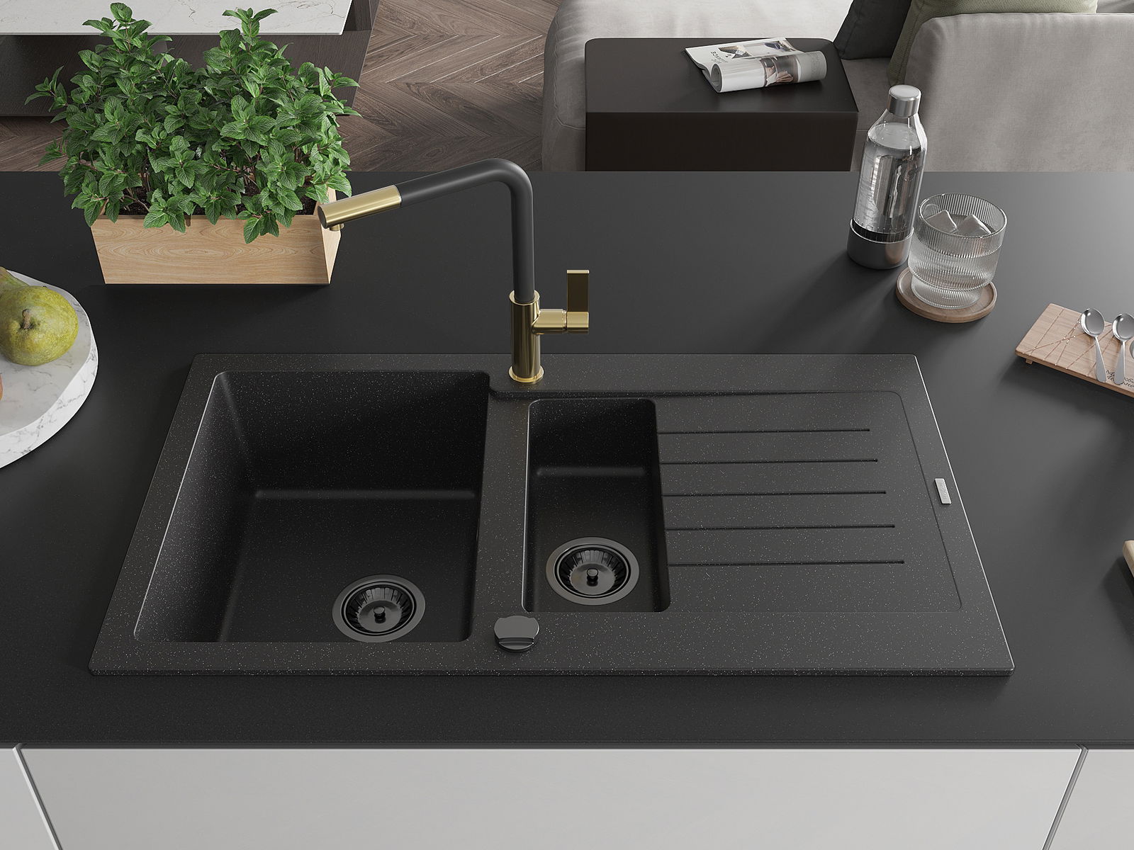 Мивката е направена от висококачествен гранит. Това е елегантно и най -вече практично допълнение към всяка кухня, независимо от нейния стил. Висококачествената и гранитна издръжливост осигуряват много години употреба.