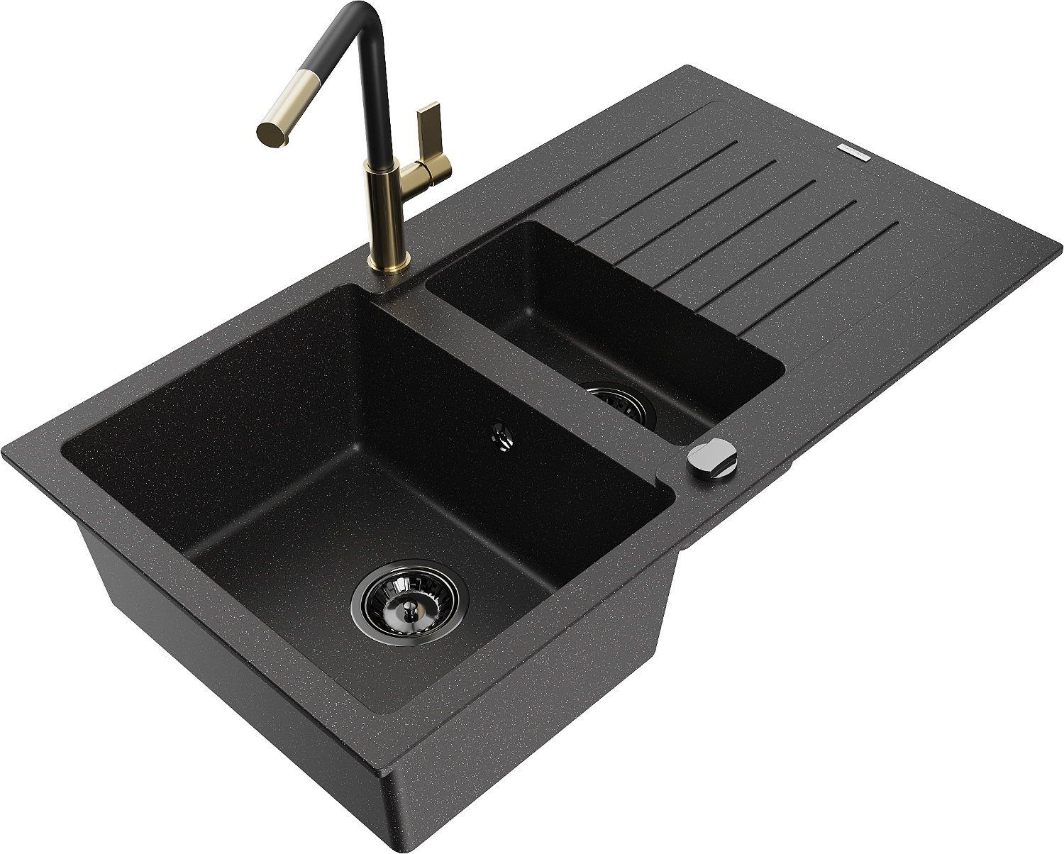 Mexen Matias гранитна мивка с 1,5 отделения и отцедник с кухненски смесител Flora, черно/сребърно - 6502-73-670401-57-B