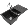 Mexen Matias гранитна мивка с 1,5 камери с отцедник и кухненски смесител Flora,