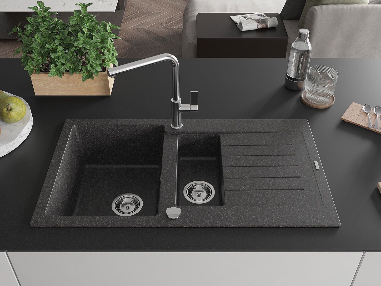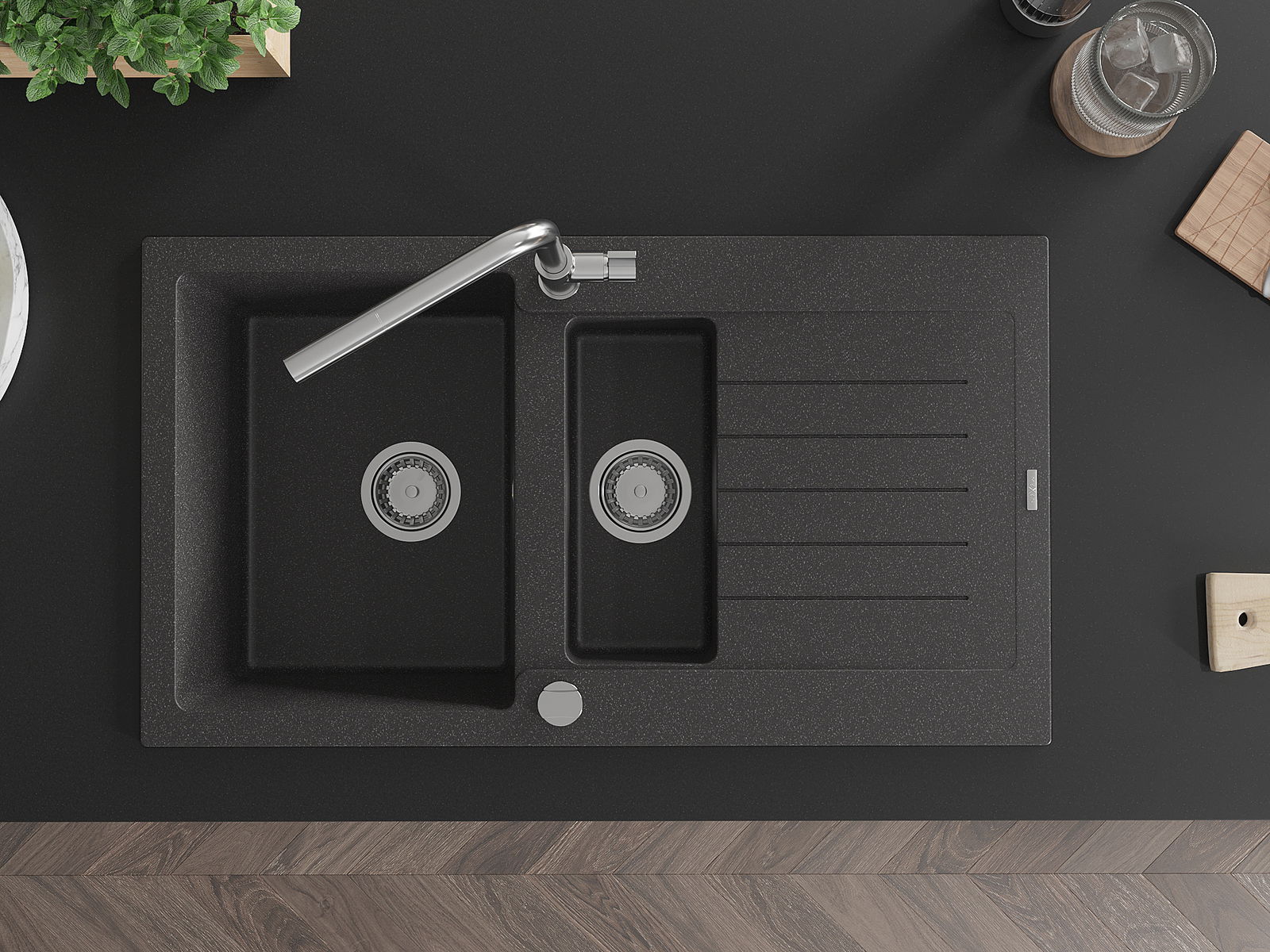 Мивката е направена от висококачествен гранит. Това е елегантно и най -вече практично допълнение към всяка кухня, независимо от нейния стил. Висококачествената и гранитна издръжливост осигуряват много години употреба.