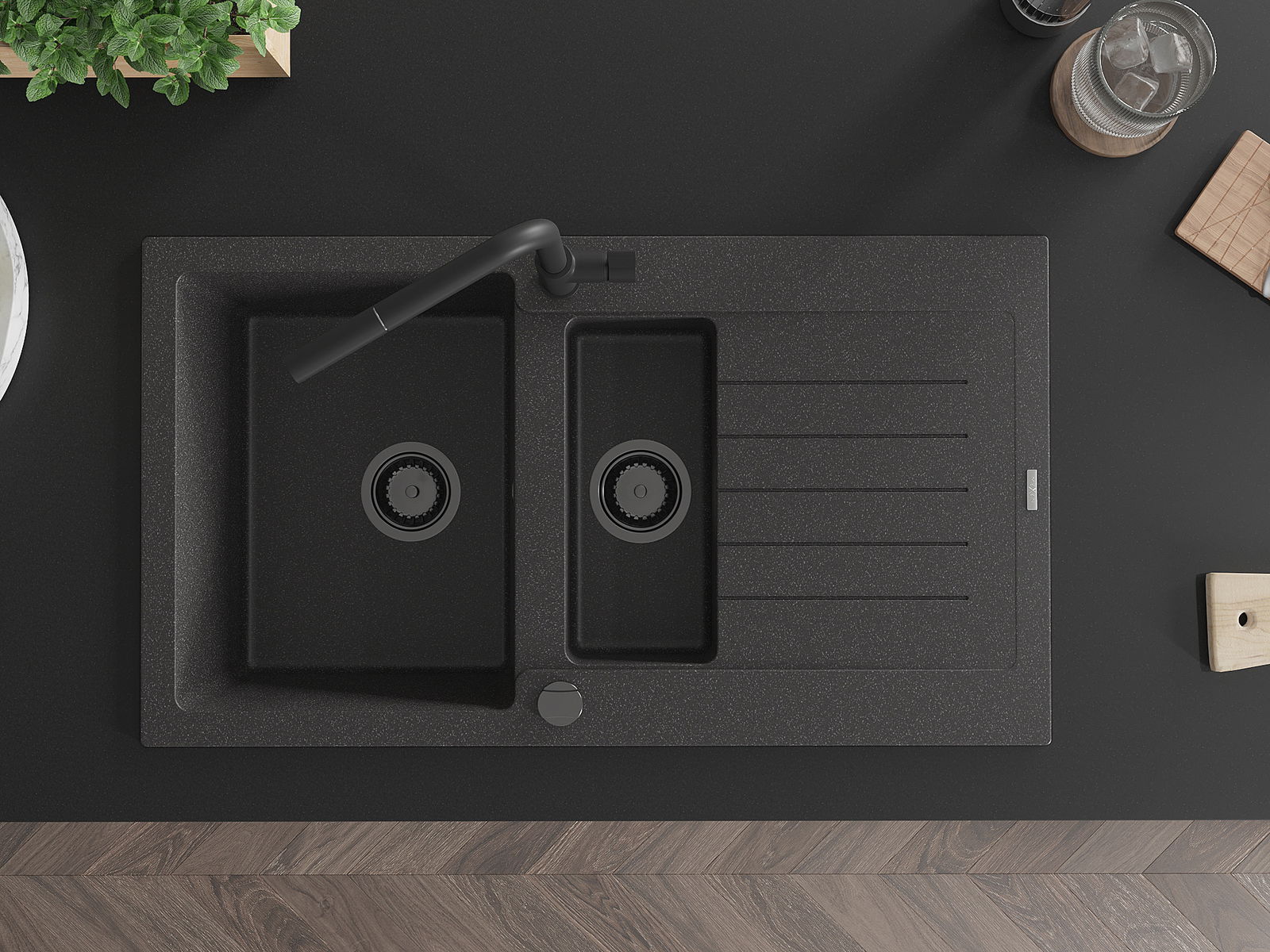 Мивката е направена от висококачествен гранит. Това е елегантно и най -вече практично допълнение към всяка кухня, независимо от нейния стил. Висококачествената и гранитна издръжливост осигуряват много години употреба.
