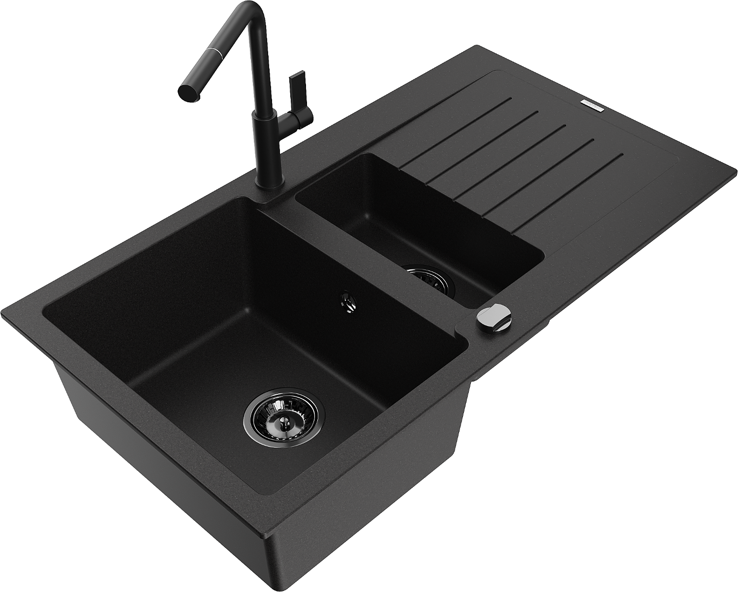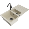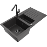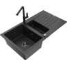 Mexen Matias гранитна мивка 1,5-коморна с отцедник и кухненски смесител Flora,