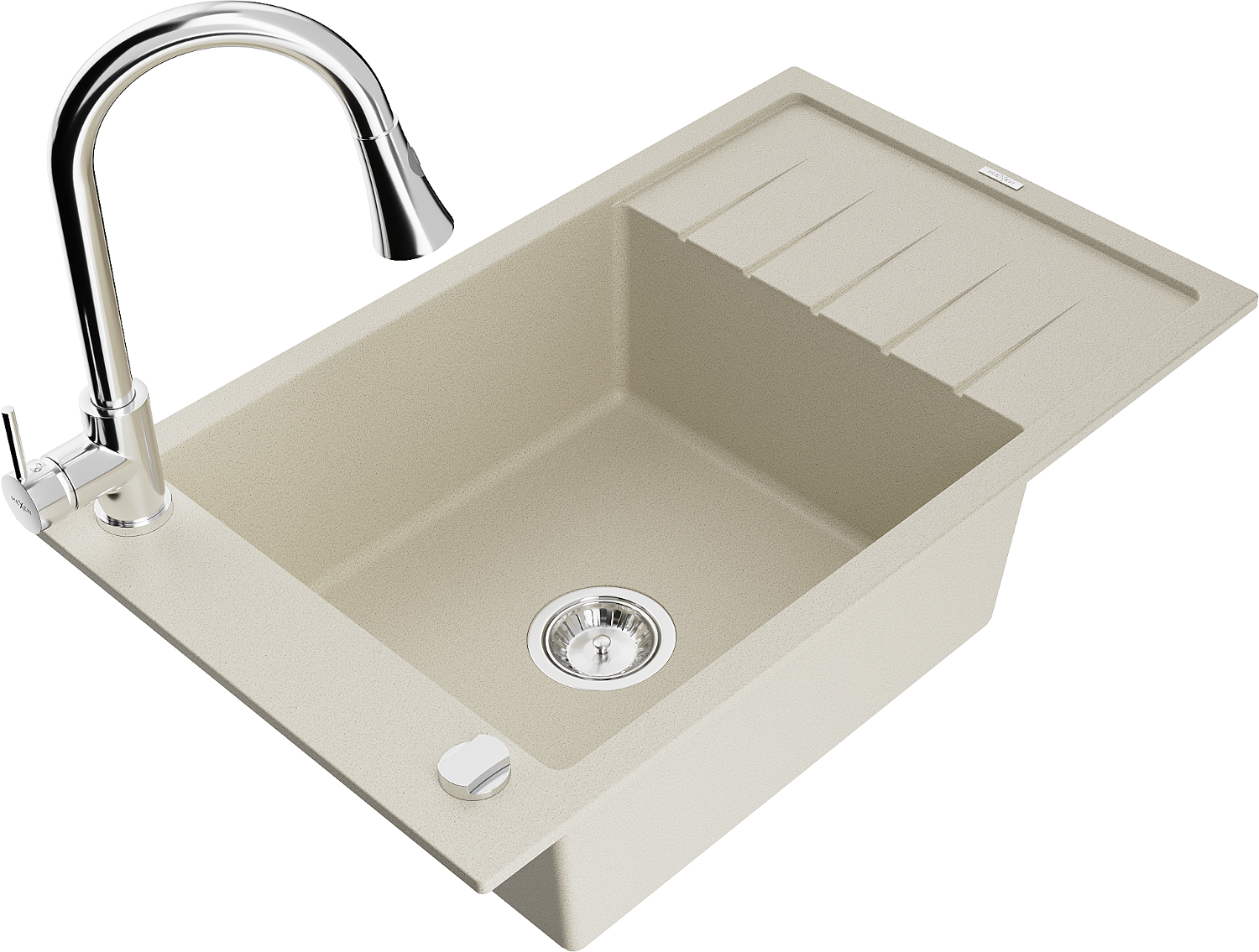 Mexen Elias гранитна мивка с 1 отделение с отцедник и кухненски смесител Elia, бежов - 6511-69-670101-00