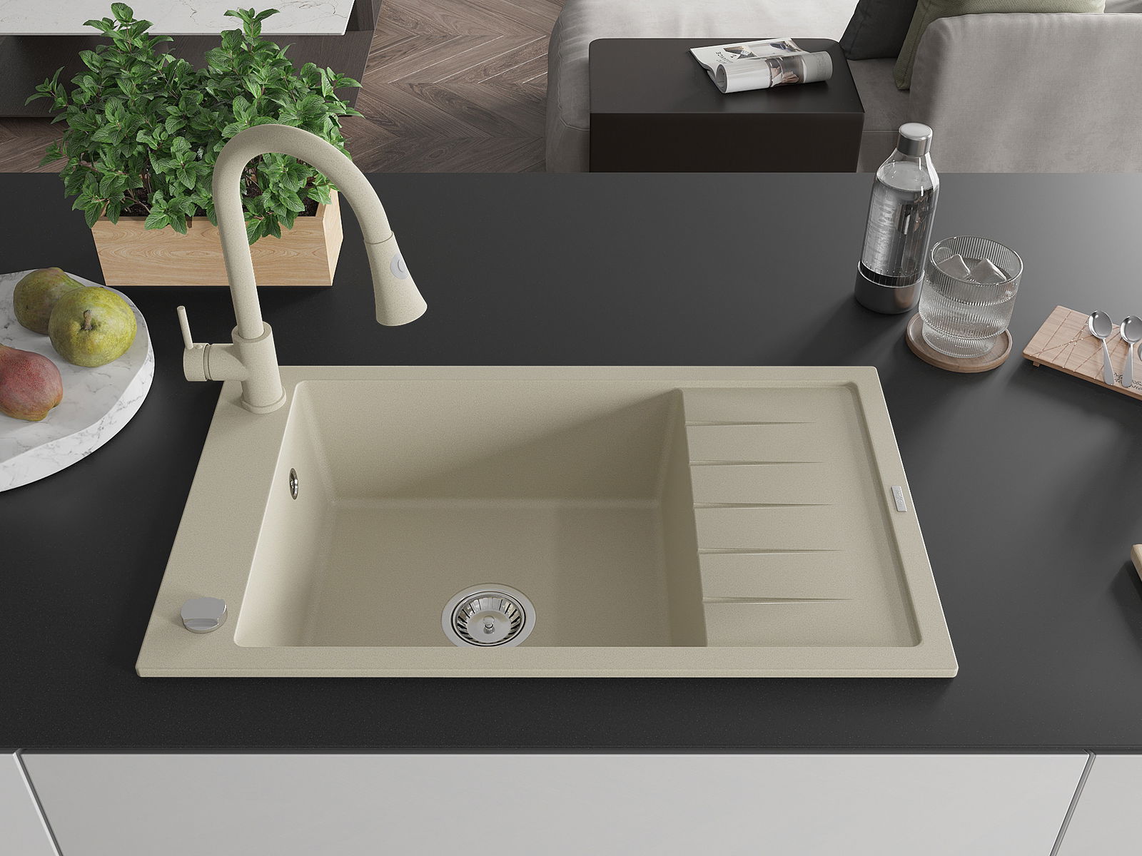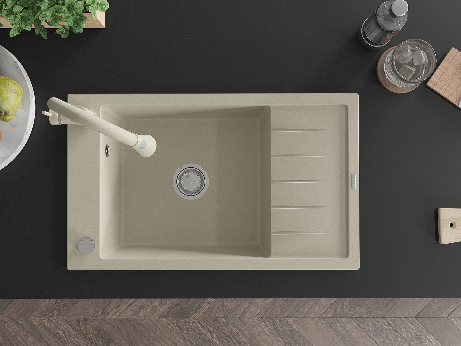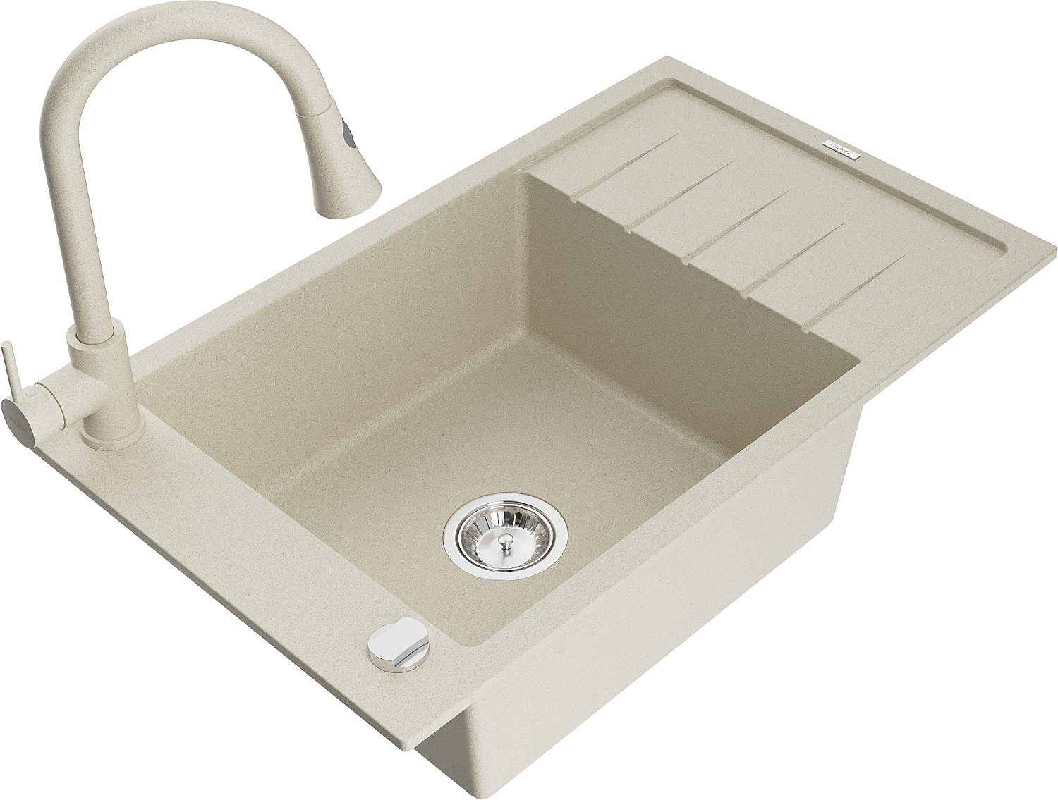 Mexen Elias гранитна мивка с 1 корито с дренаж и кухненски смесител Elia, бежов - 6511-69-670101-69