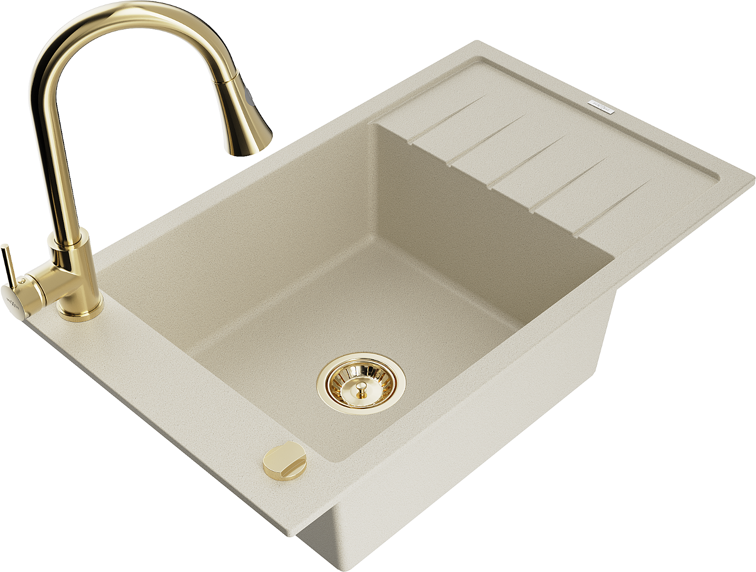 Mexen Elias гранитна мивка, 1-камерна с отцедник и кухненски смесител Elia, бежова - 6511-69-670101-50