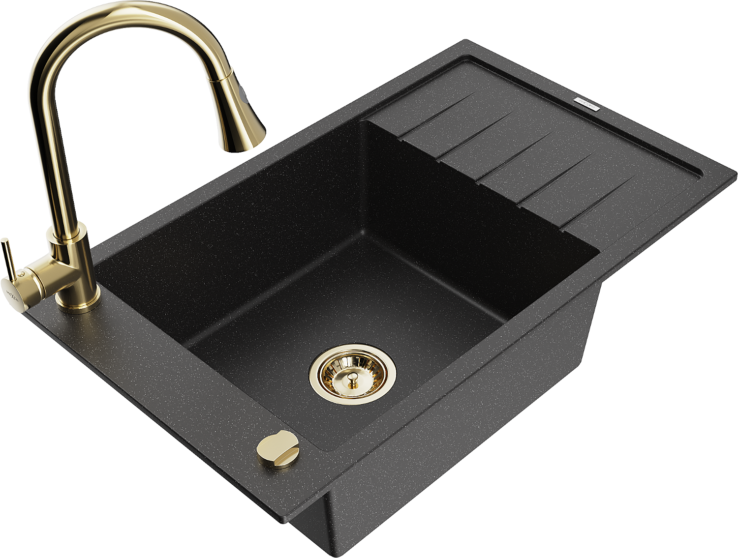 Mexen Elias гранитна мивка с 1 отделение с отцедник и кухненски смесител Elia, черен/сребърен металик - 6511-73-670101-50