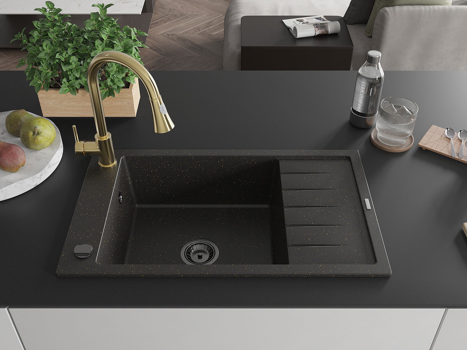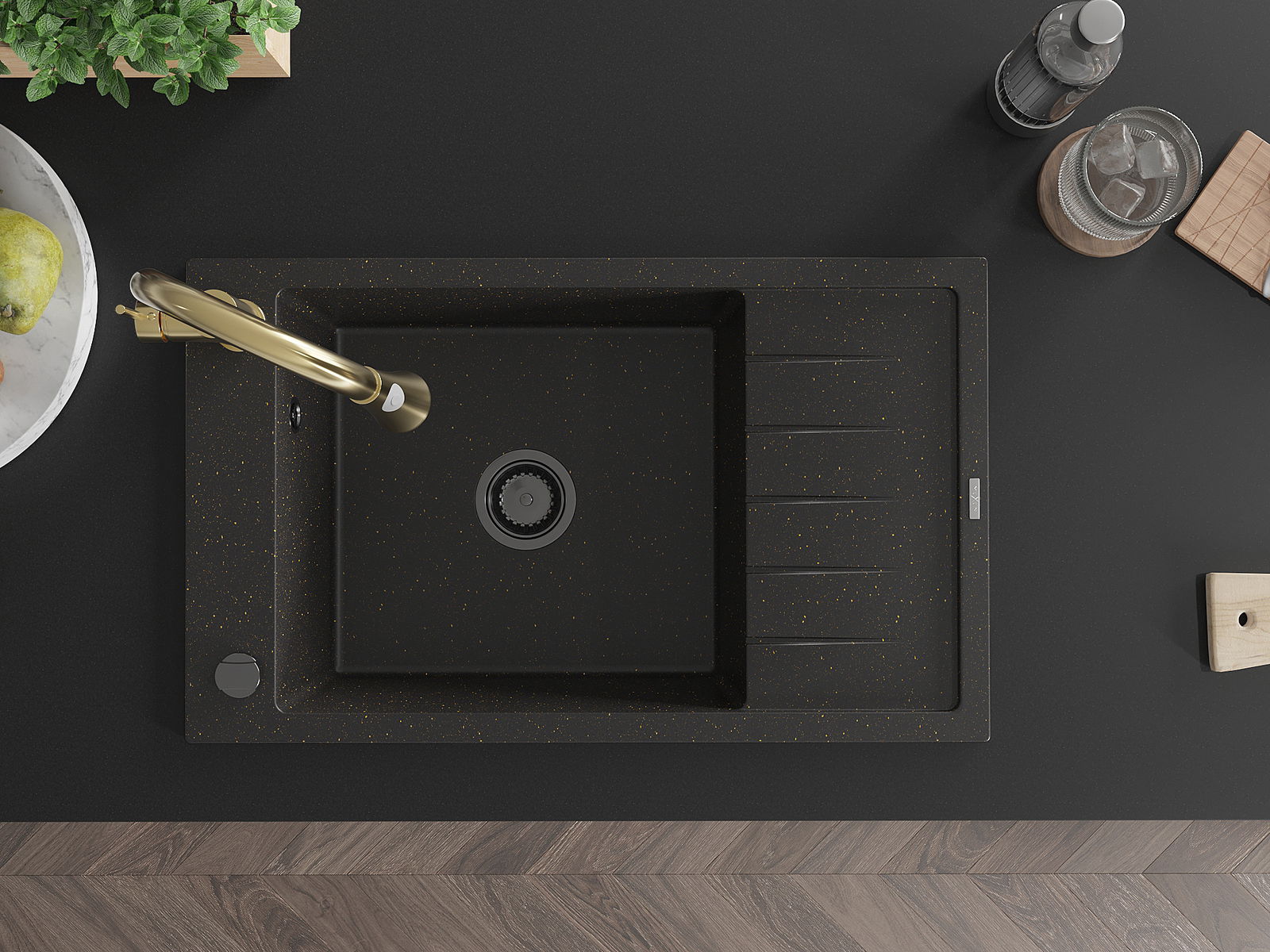 Мивката е направена от висококачествен гранит. Това е елегантно и най -вече практично допълнение към всяка кухня, независимо от нейния стил. Висококачествената и гранитна издръжливост осигуряват много години употреба.