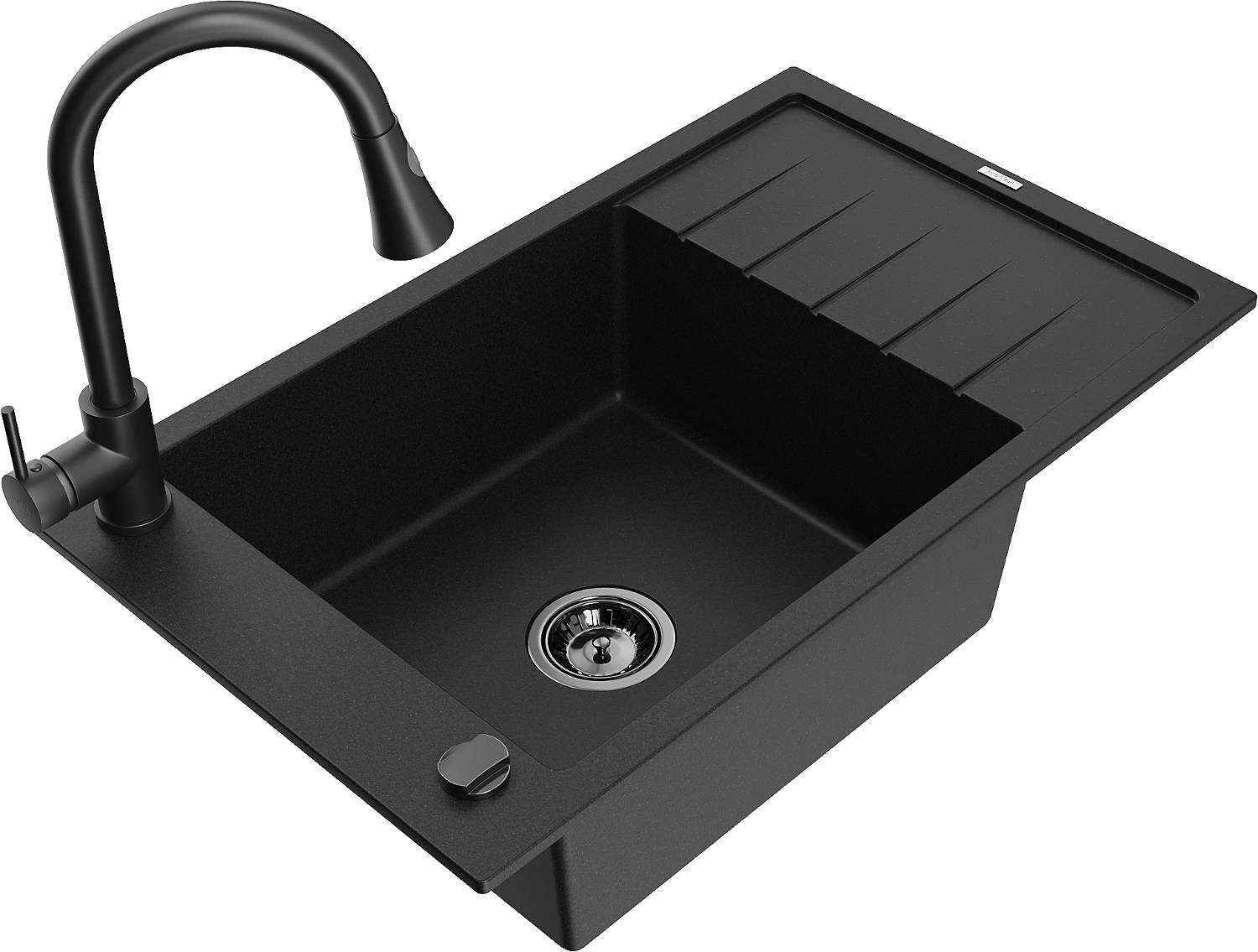Mexen Elias гранитна мивка с една камера с отцедник и кухненски смесител Elia, черен - 6511-77-670101-70-B
