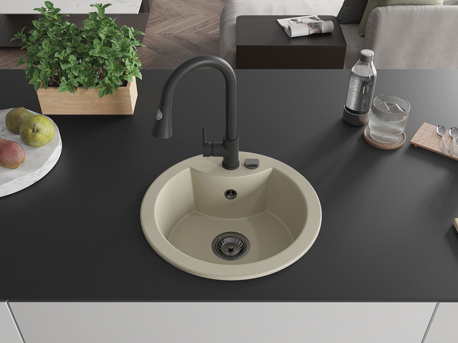 Мивката е направена от висококачествен гранит. Това е елегантно и най -вече практично допълнение към всяка кухня, независимо от нейния стил. Висококачествената и гранитна издръжливост осигуряват много години употреба.