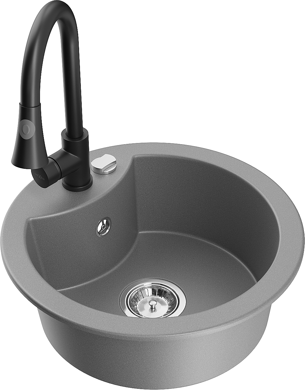 Mexen Diego гранитна мивка 1-камерна с кухненски смесител Elia, сив - 6512-71-670101-70