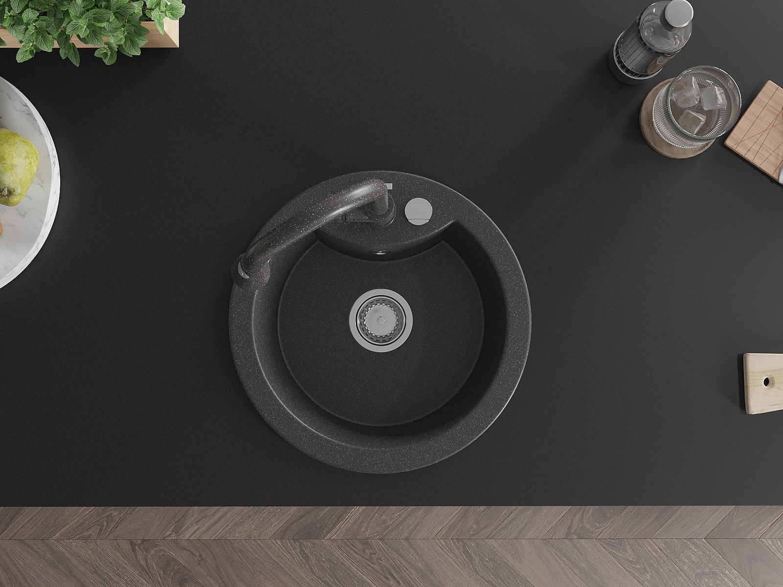 Мивката е направена от висококачествен гранит. Това е елегантно и най -вече практично допълнение към всяка кухня, независимо от нейния стил. Висококачествената и гранитна издръжливост осигуряват много години употреба.