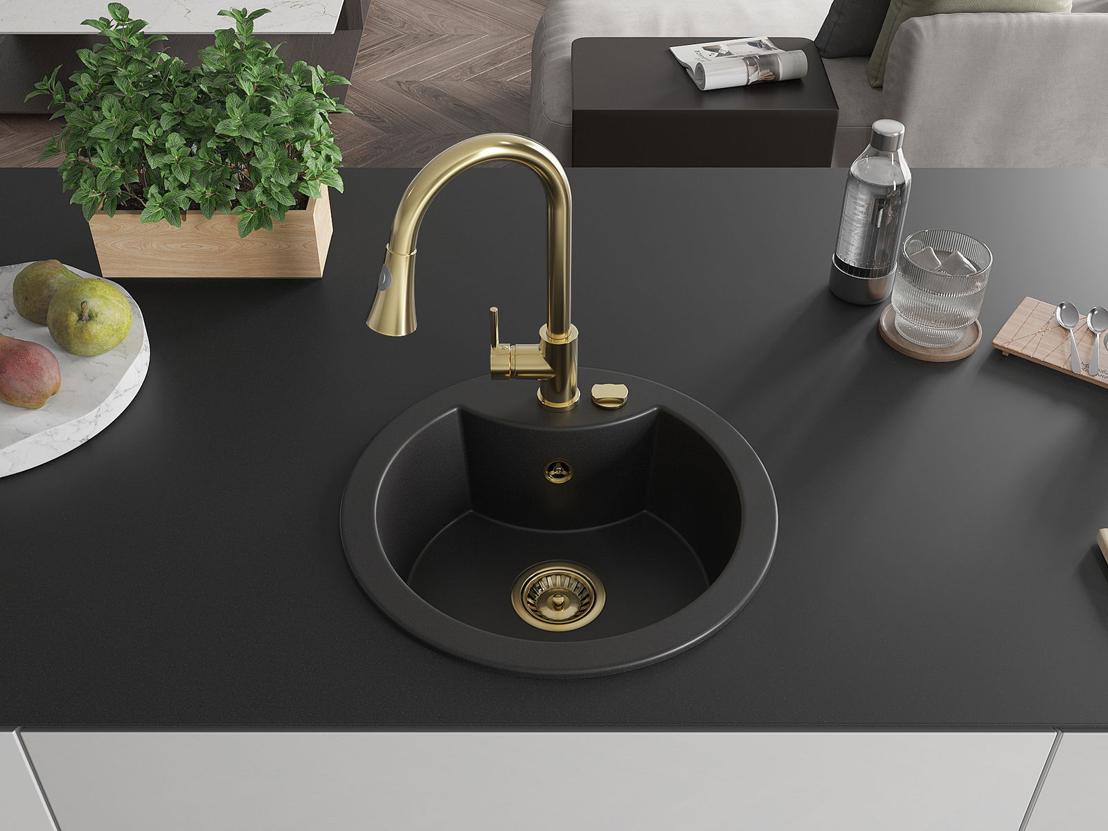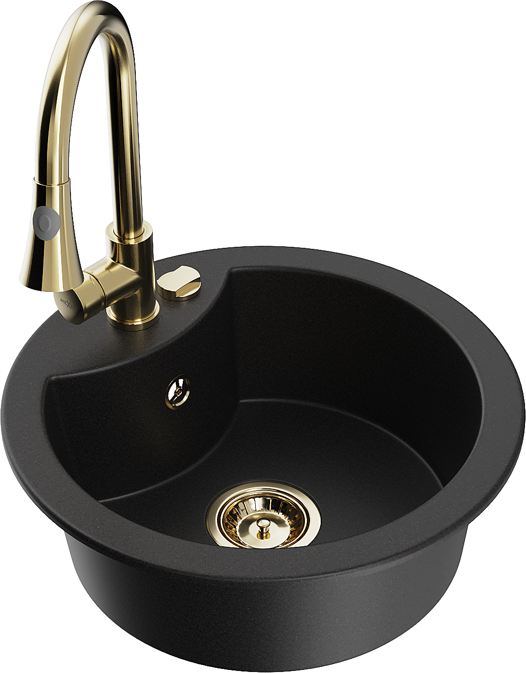 Mexen Diego гранитна мивка 1-камерна с кухненски смесител Elia, черна