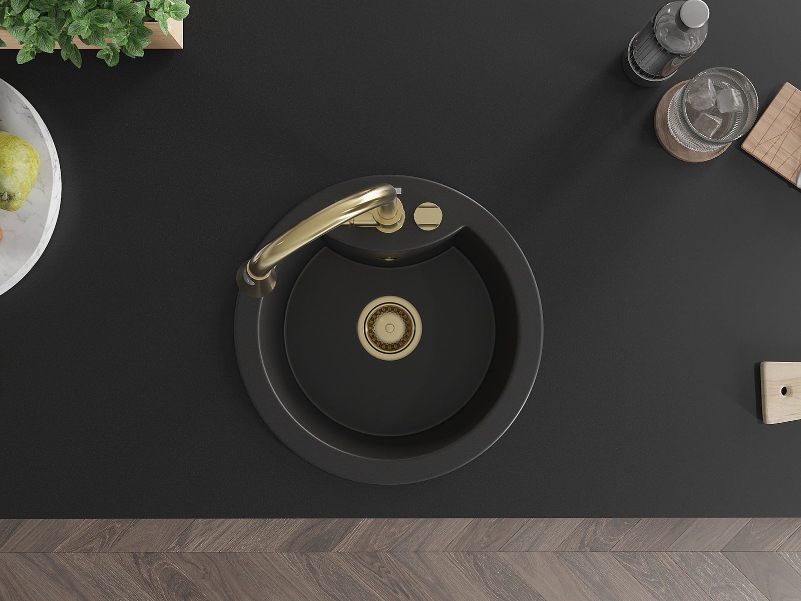 Мивката разполага с предварително издълбан отвор с диаметър 35 мм за самостоятелно изключване. Може да се използва, наред с други неща, за монтаж на дозатор за течност, който ще елиминира наличието на пластмасови бутилки в кухнята и ще й придаде елегантно завършване.