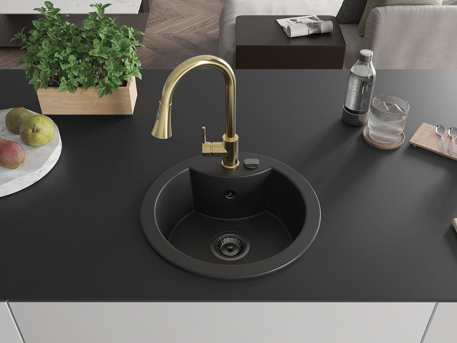 Мивката е направена от висококачествен гранит. Това е елегантно и най -вече практично допълнение към всяка кухня, независимо от нейния стил. Висококачествената и гранитна издръжливост осигуряват много години употреба.