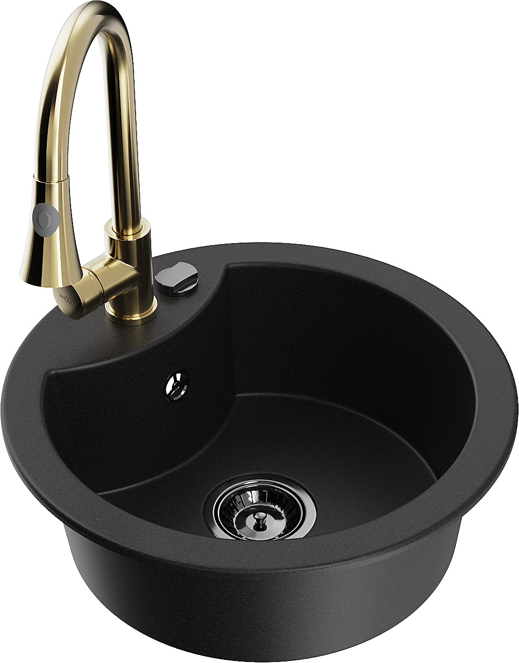 Mexen Diego гранитна мивка с 1 камера и кухненски смесител Elia, черен - 6512-77-670101-50-B