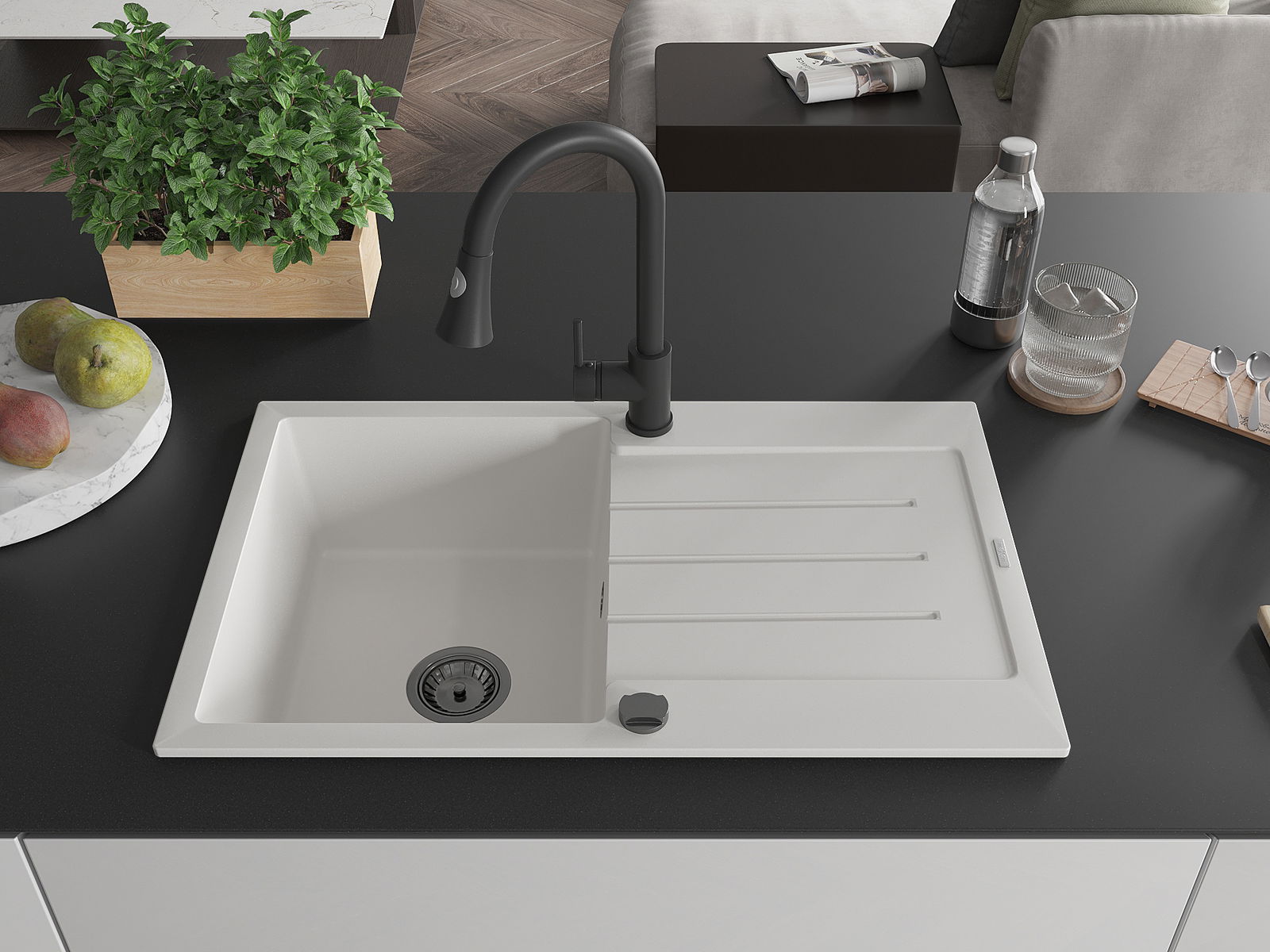 Повърхността на мивката е устойчива на петна и обезцветяване, благодарение на които е лесно да се почиства и запазва цвета си за дълго време. Естетически и практически допълващи всяка кухня.