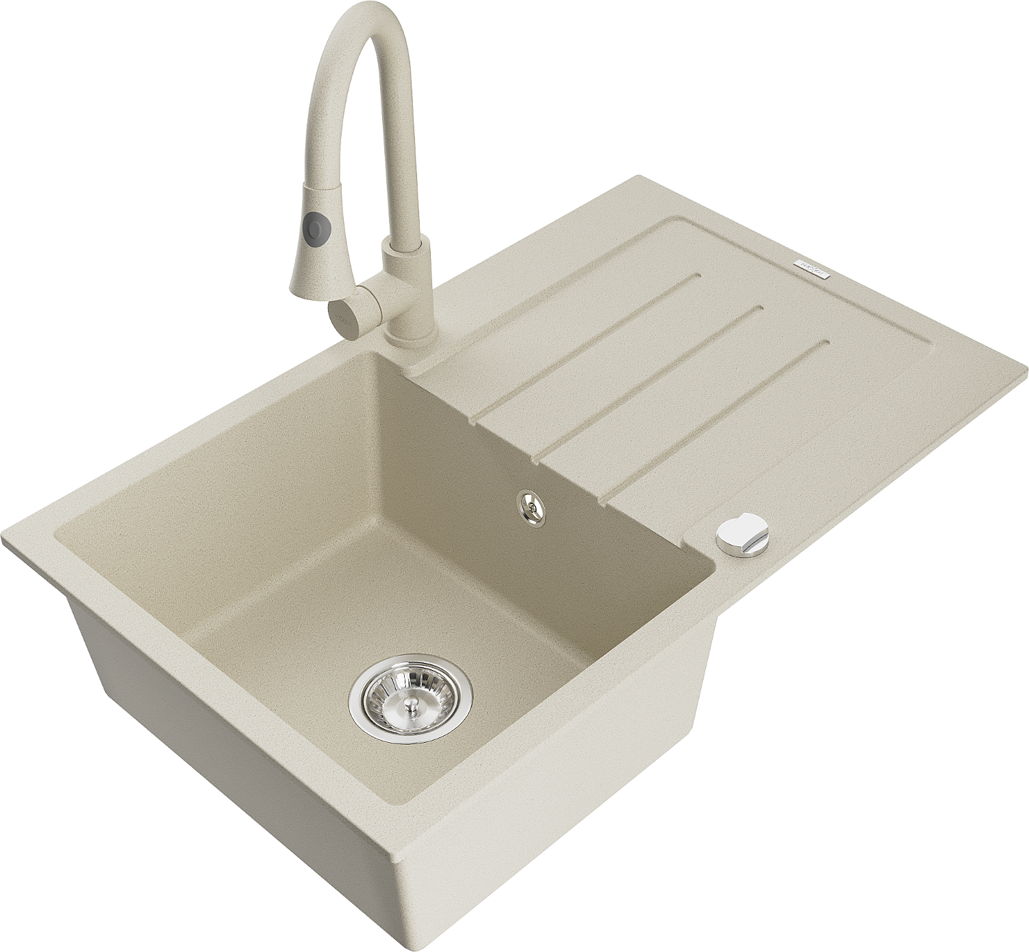 Повърхността на мивката е устойчива на петна и обезцветяване, благодарение на които е лесно да се почиства и запазва цвета си за дълго време. Естетически и практически допълващи всяка кухня.