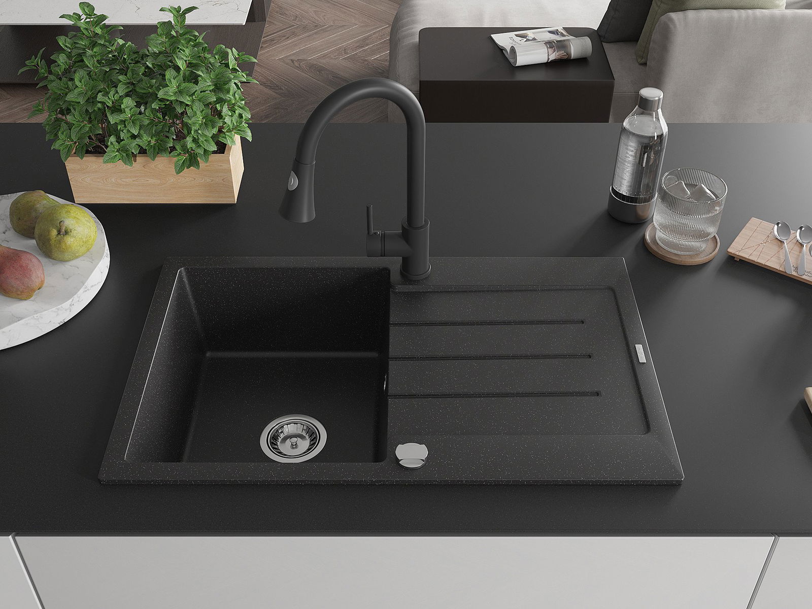 Mexen Bruno гранитна кухненска мивка с 1 купа с отцедник и кухненски