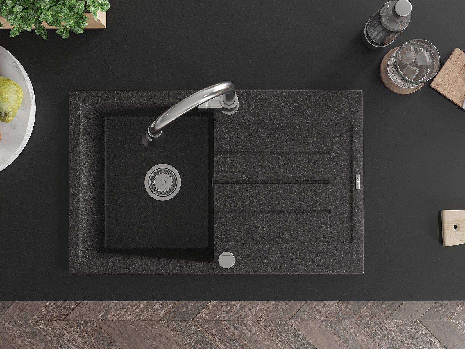 Мивката е направена от висококачествен гранит. Това е елегантно и най -вече практично допълнение към всяка кухня, независимо от нейния стил. Висококачествената и гранитна издръжливост осигуряват много години употреба.