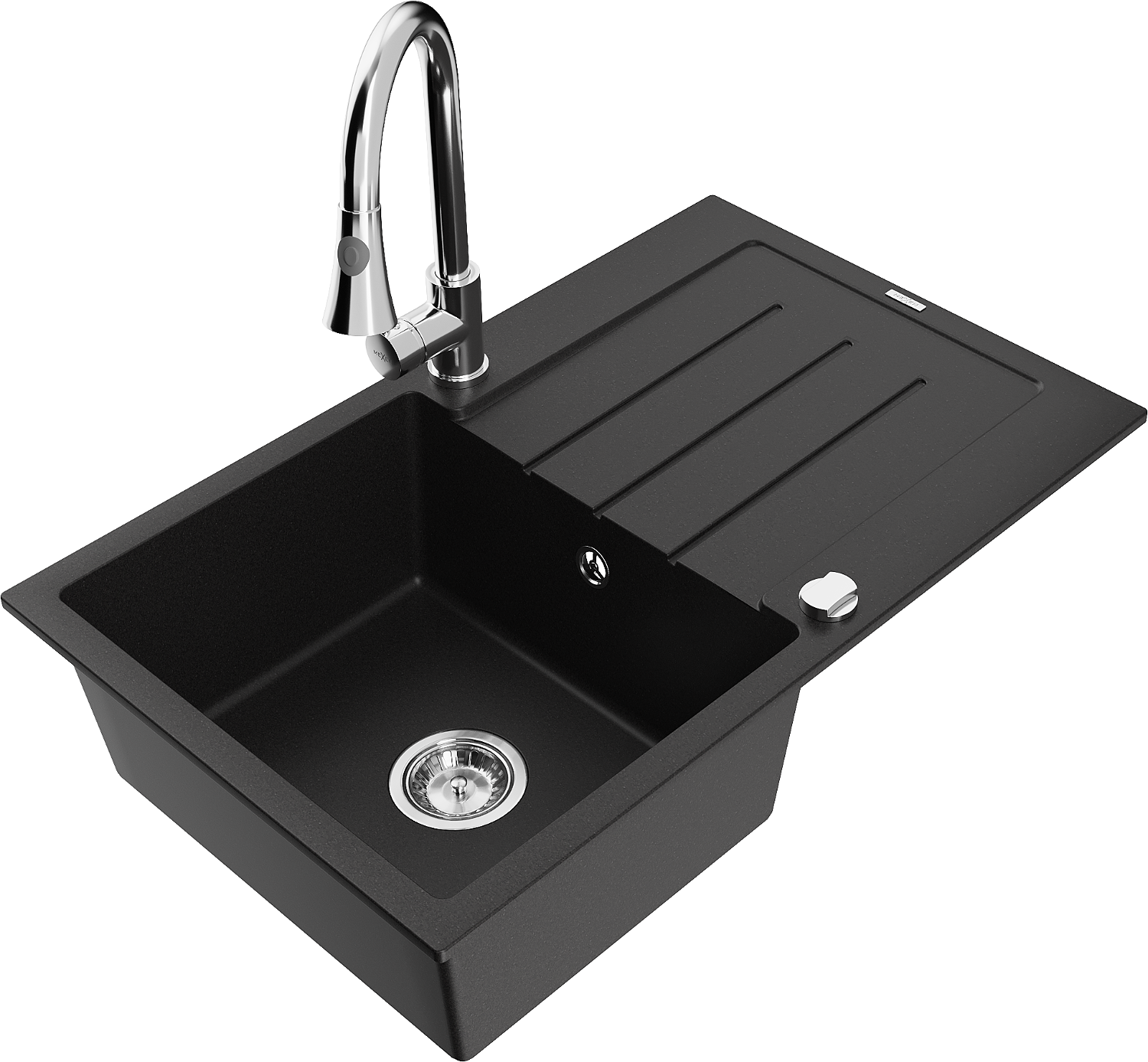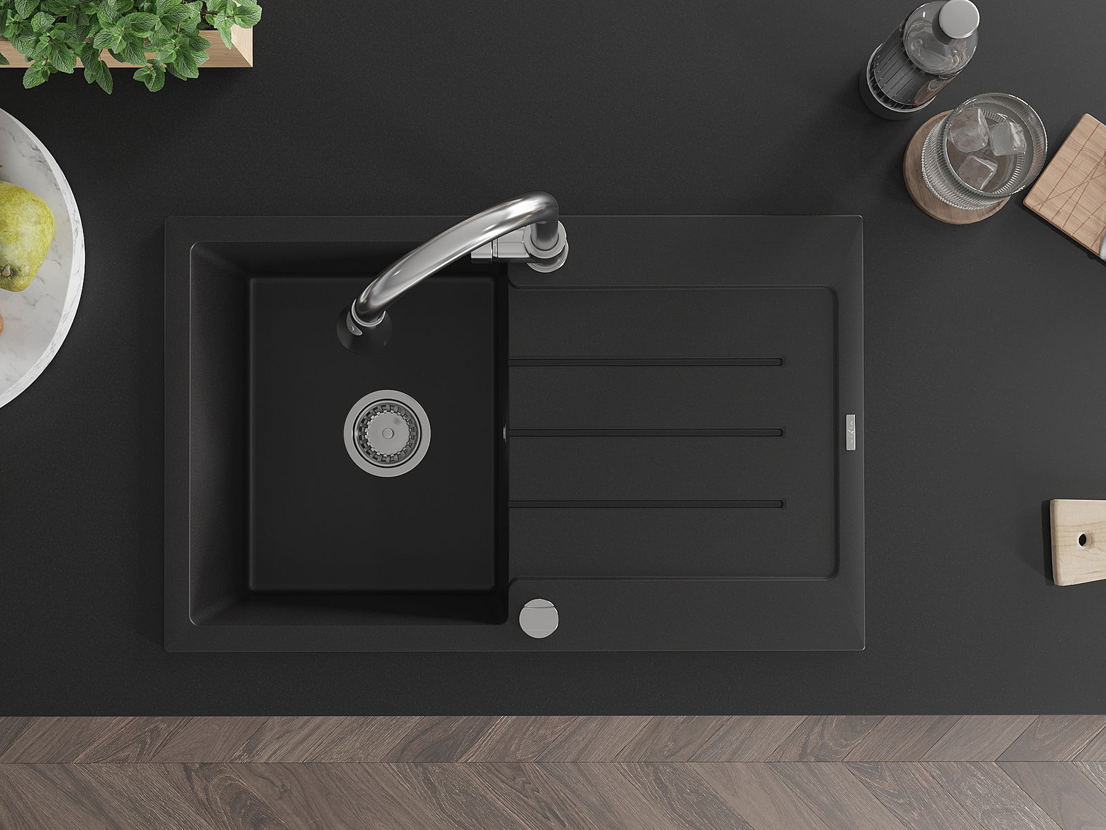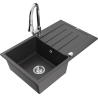 Mexen Bruno гранитна мивка с 1 корито и отцедник и кухненски смесител Elia, черен - 6513-77-670101-00