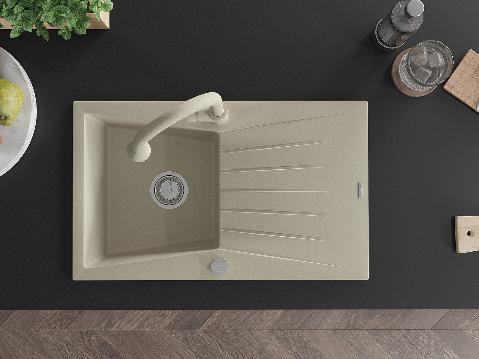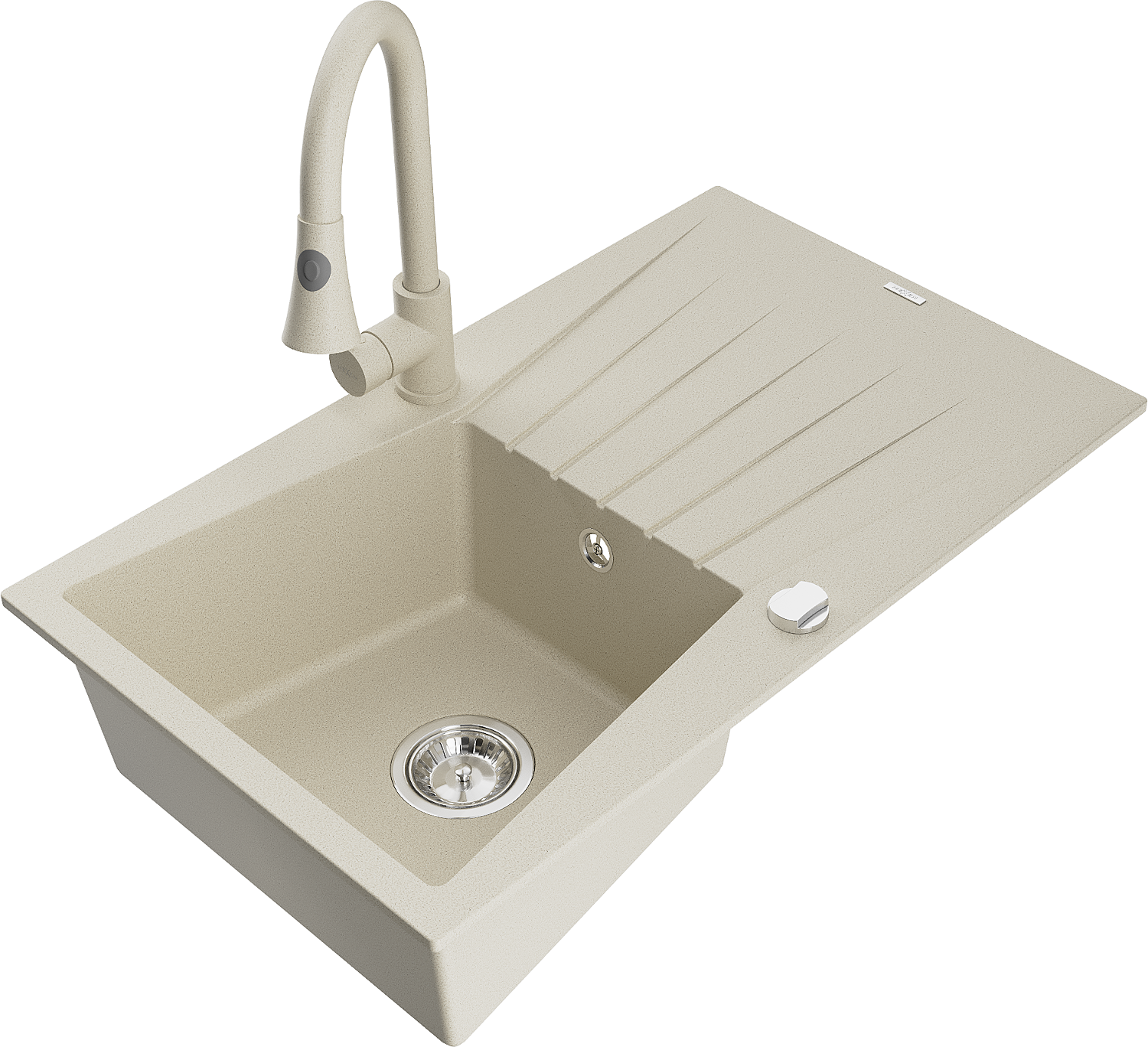 Mexen Cesar гранитна мивка с 1 отделение с отцедник и кухненски смесител Elia, бежов - 6514-69-670101-69