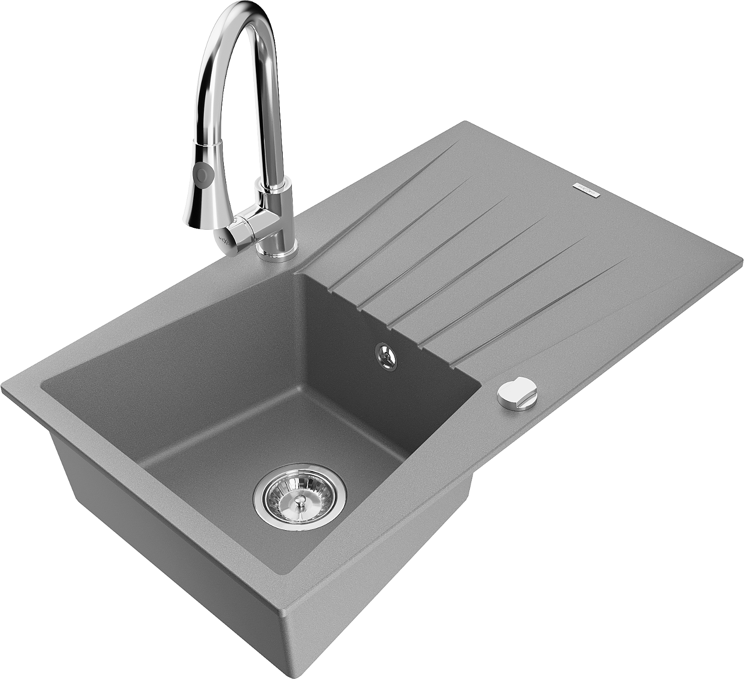 Mexen Cesar гранитна мивка с 1 отделение и отцедник и кухненски смесител Elia, сив - 6514-71-670101-00