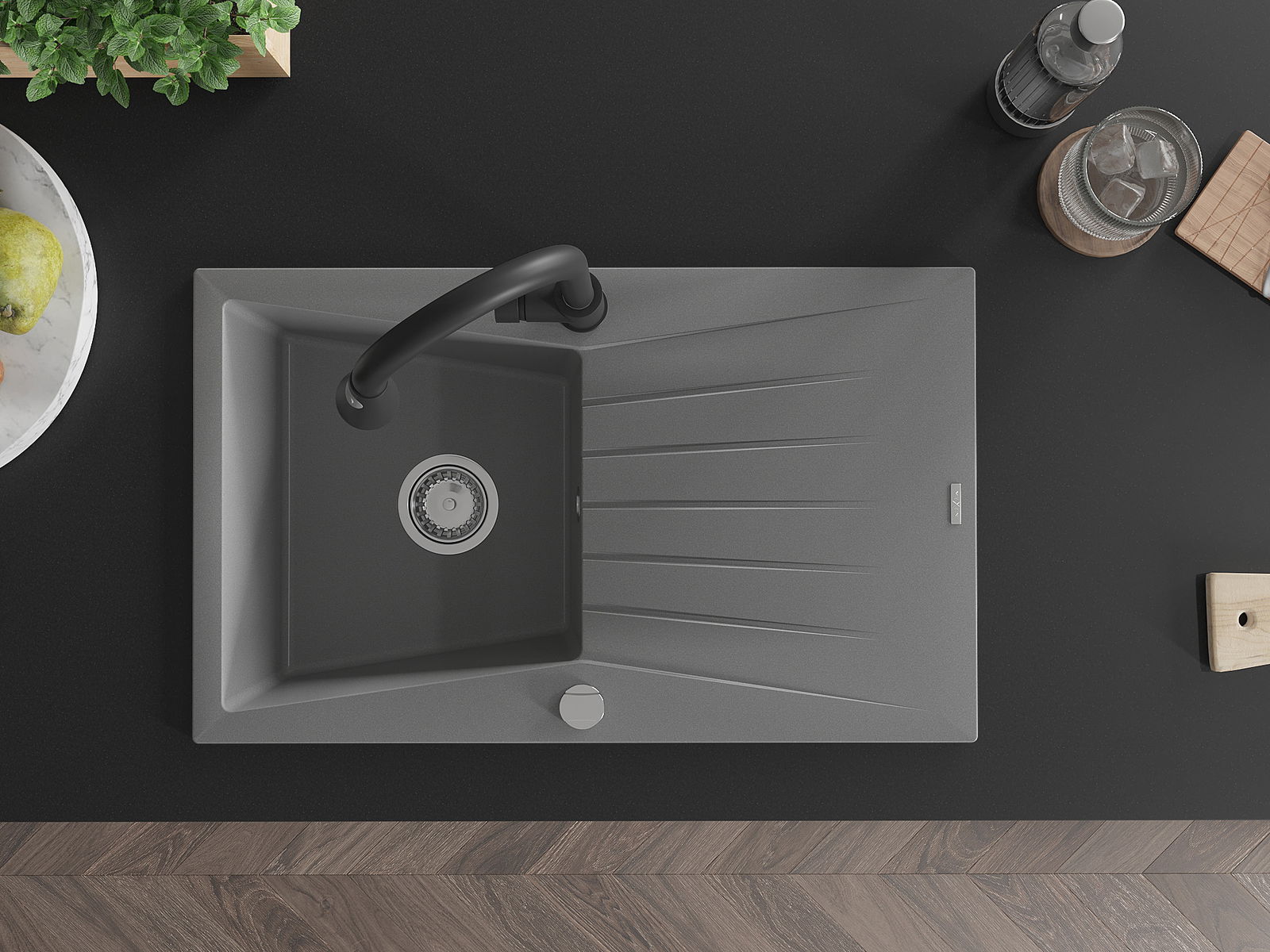 Мивката е направена от висококачествен гранит. Това е елегантно и най -вече практично допълнение към всяка кухня, независимо от нейния стил. Висококачествената и гранитна издръжливост осигуряват много години употреба.