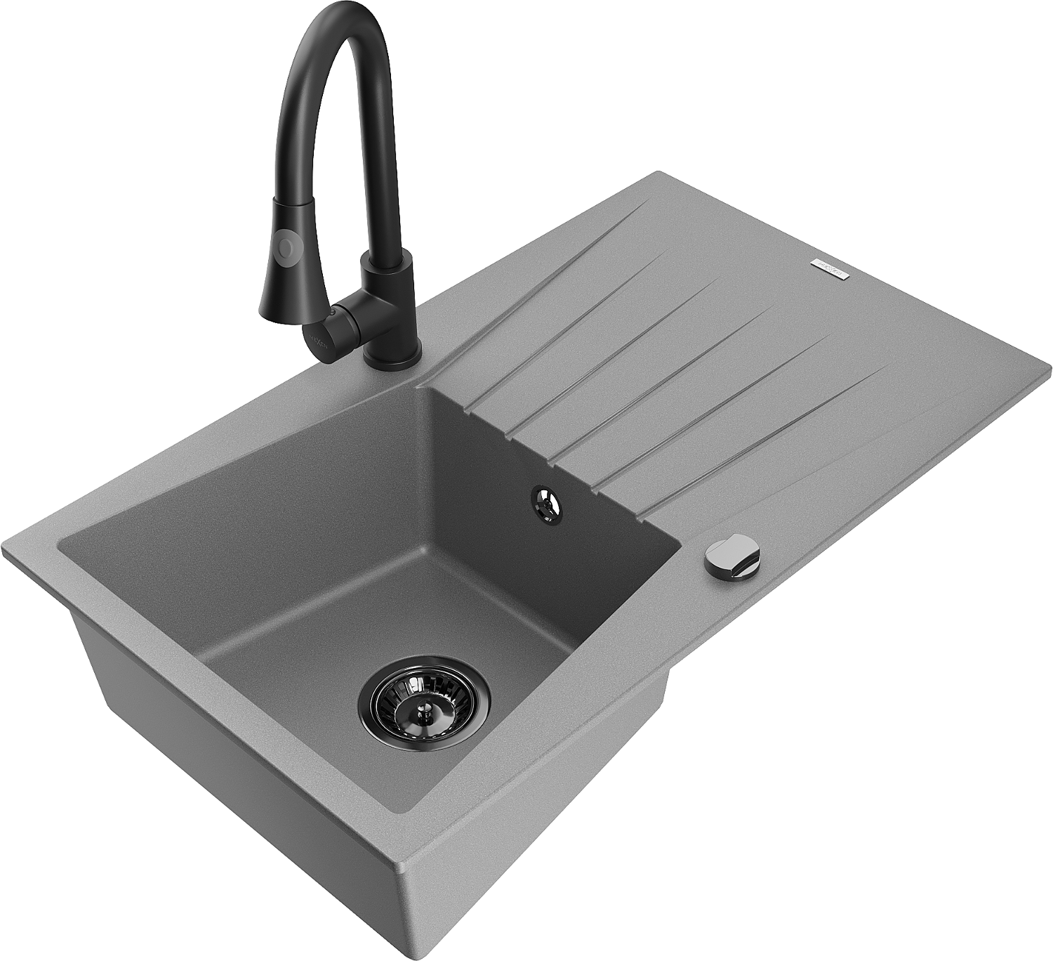Mexen Cesar мивка от гранит с 1 отделение с отцедник и кухненски смесител Elia, сив - 6514-71-670101-70-B