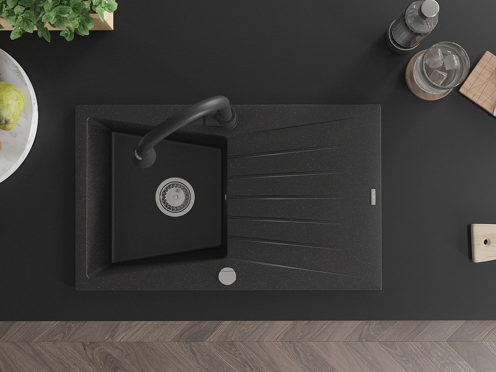 Мивката е направена от висококачествен гранит. Това е елегантно и най -вече практично допълнение към всяка кухня, независимо от нейния стил. Висококачествената и гранитна издръжливост осигуряват много години употреба.