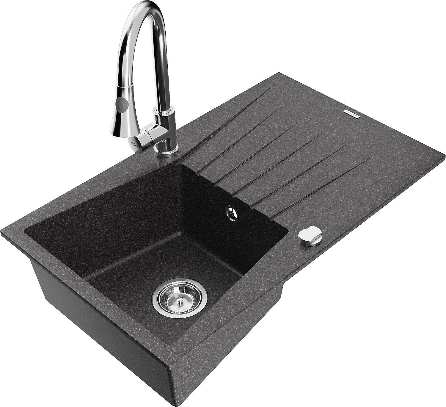 Mexen Cesar мивка гранитна 1-камерна с отцедник и кухненски смесител Elia, черен с петна - 6514-76-670101-00