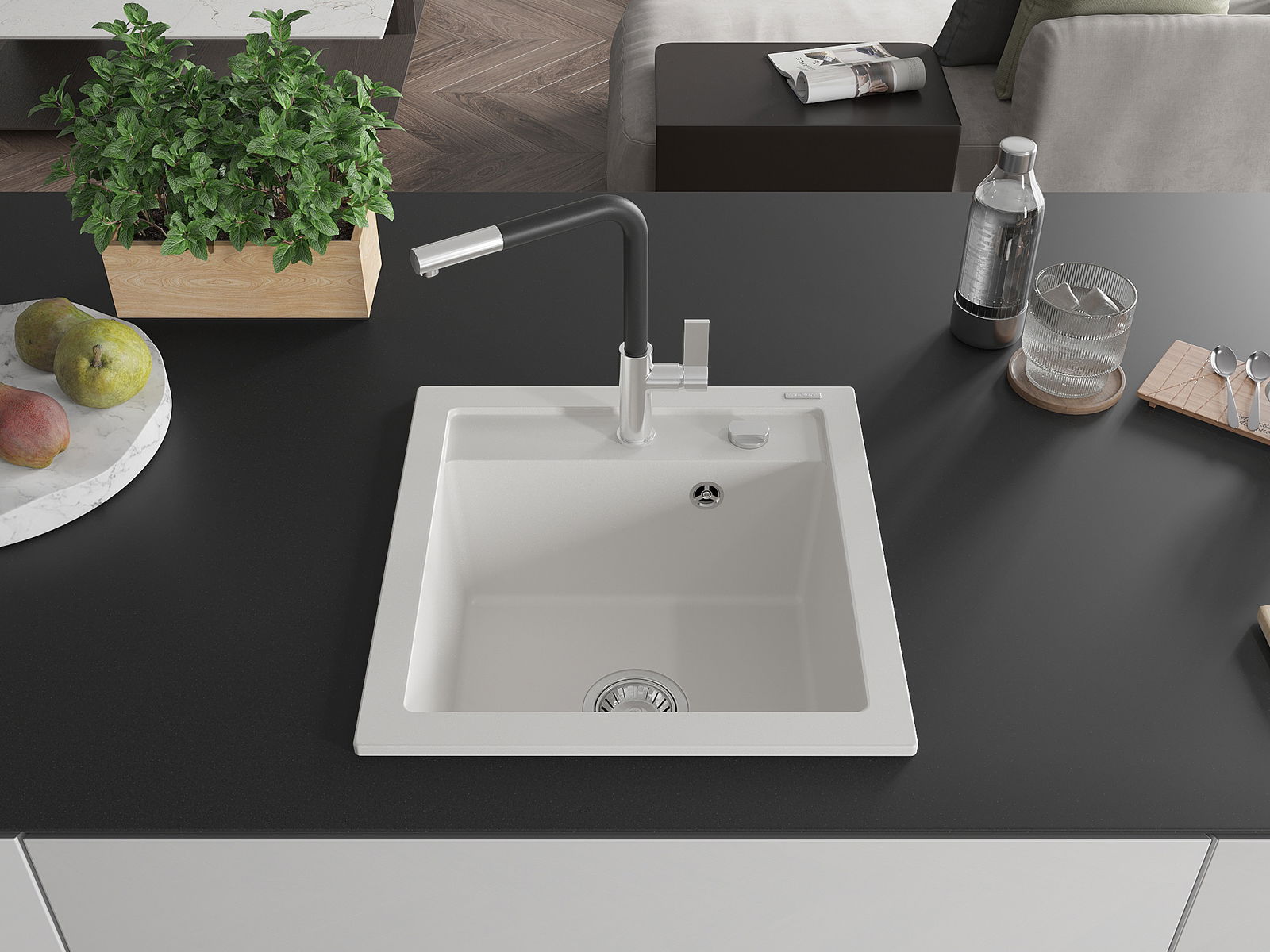 Мивката е направена от висококачествен гранит. Това е елегантно и най -вече практично допълнение към всяка кухня, независимо от нейния стил. Висококачествената и гранитна издръжливост осигуряват много години употреба.
