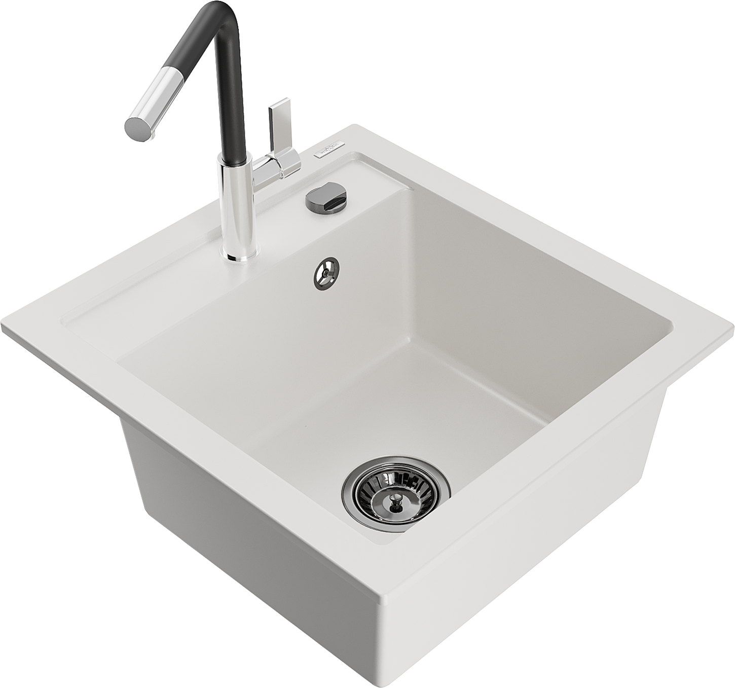 Mexen Vito гранитна кухненска мивка 1-коморна с кухненски смесител Flora, бяла - 6503-20-670401-07-B