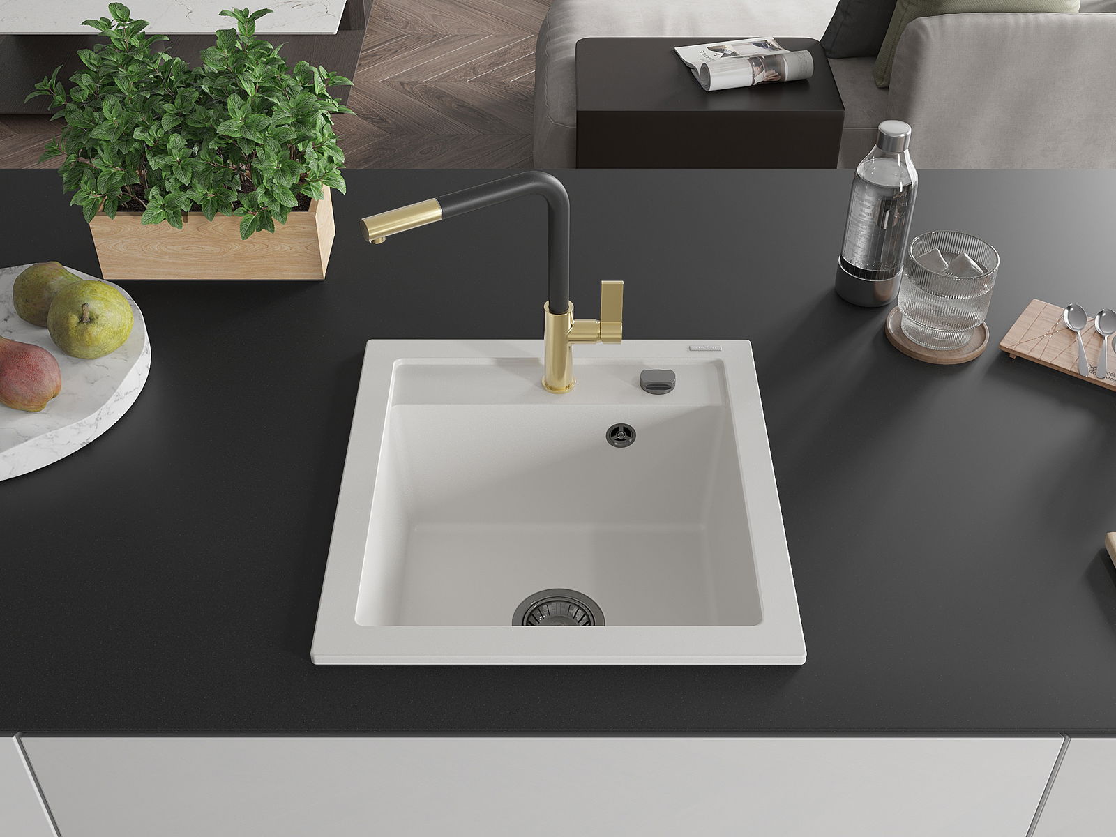 Мивката е направена от висококачествен гранит. Това е елегантно и най -вече практично допълнение към всяка кухня, независимо от нейния стил. Висококачествената и гранитна издръжливост осигуряват много години употреба.