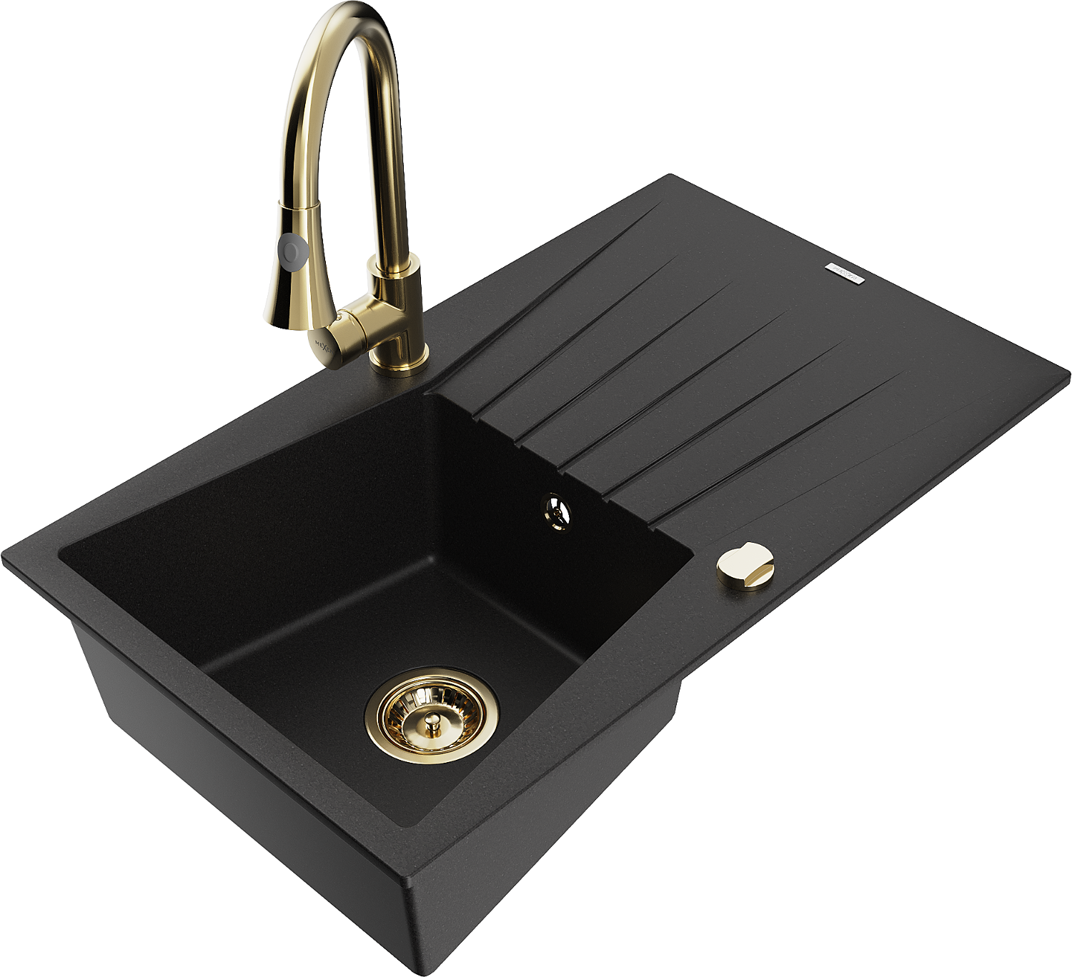 Mexen Cesar гранитна кухненска мивка с една камера с отцедник и кухненски смесител Elia, черен - 6514-77-670101-50