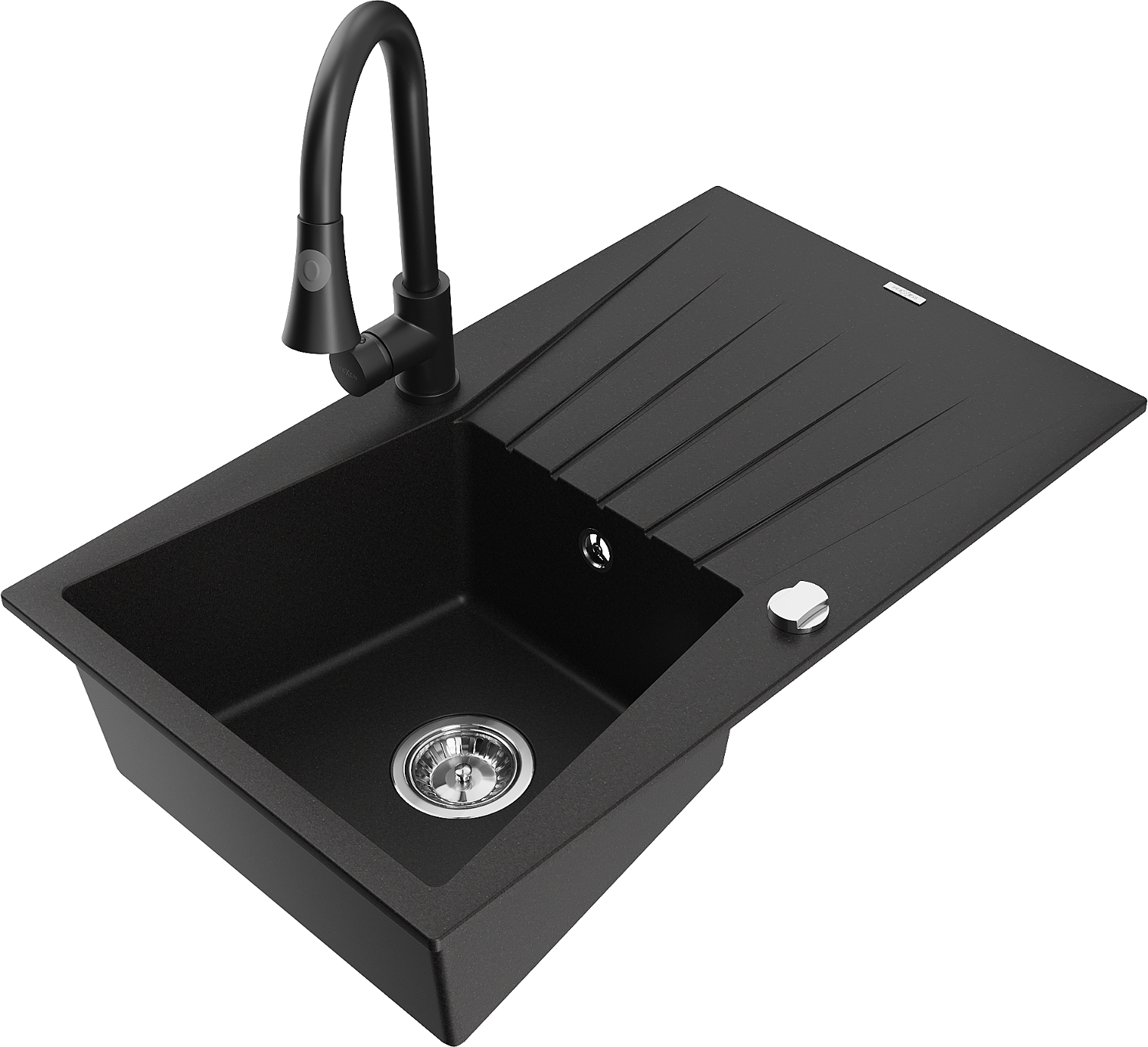 Mexen Cesar гранитна мивка с 1 отделение с отцедник и кухненски смесител Elia, черен - 6514-77-670101-70