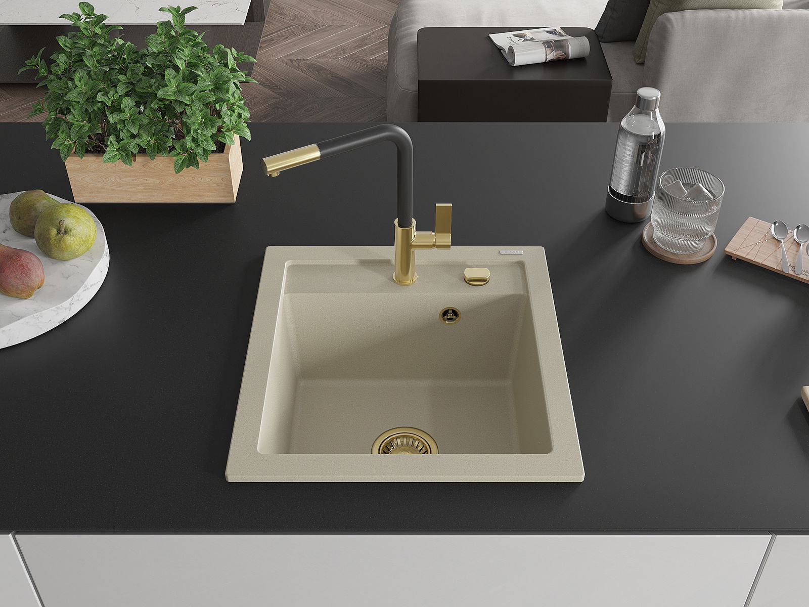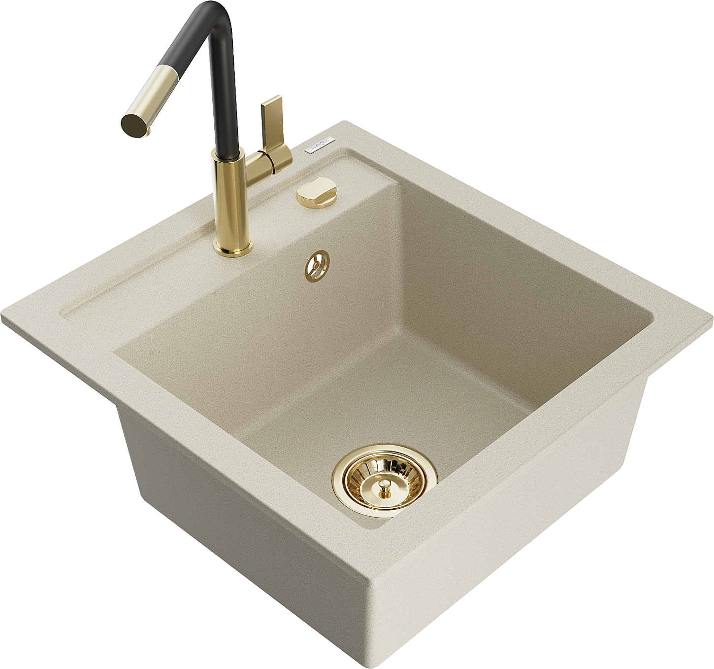 Гранитна кухненска мивка Mexen Vito с 1 отделение и кухненски смесител Flora, бежов - 6503-69-670401-57-G