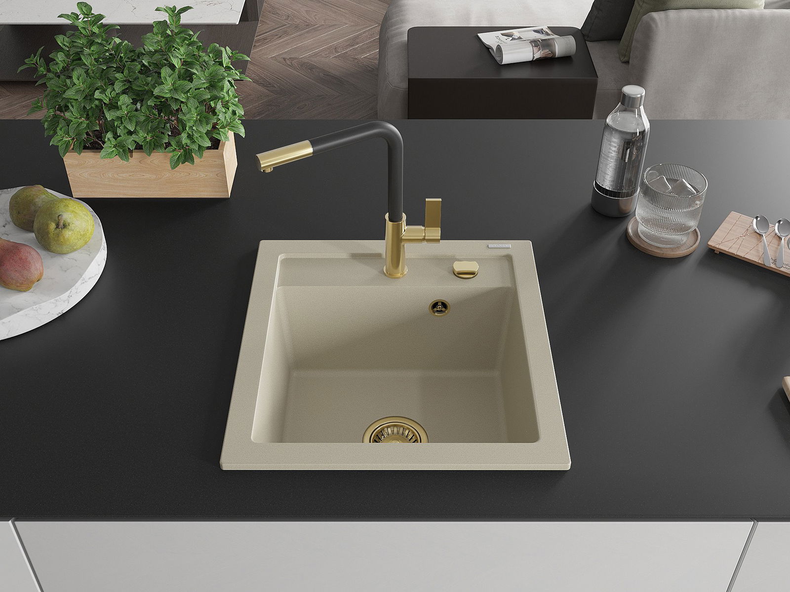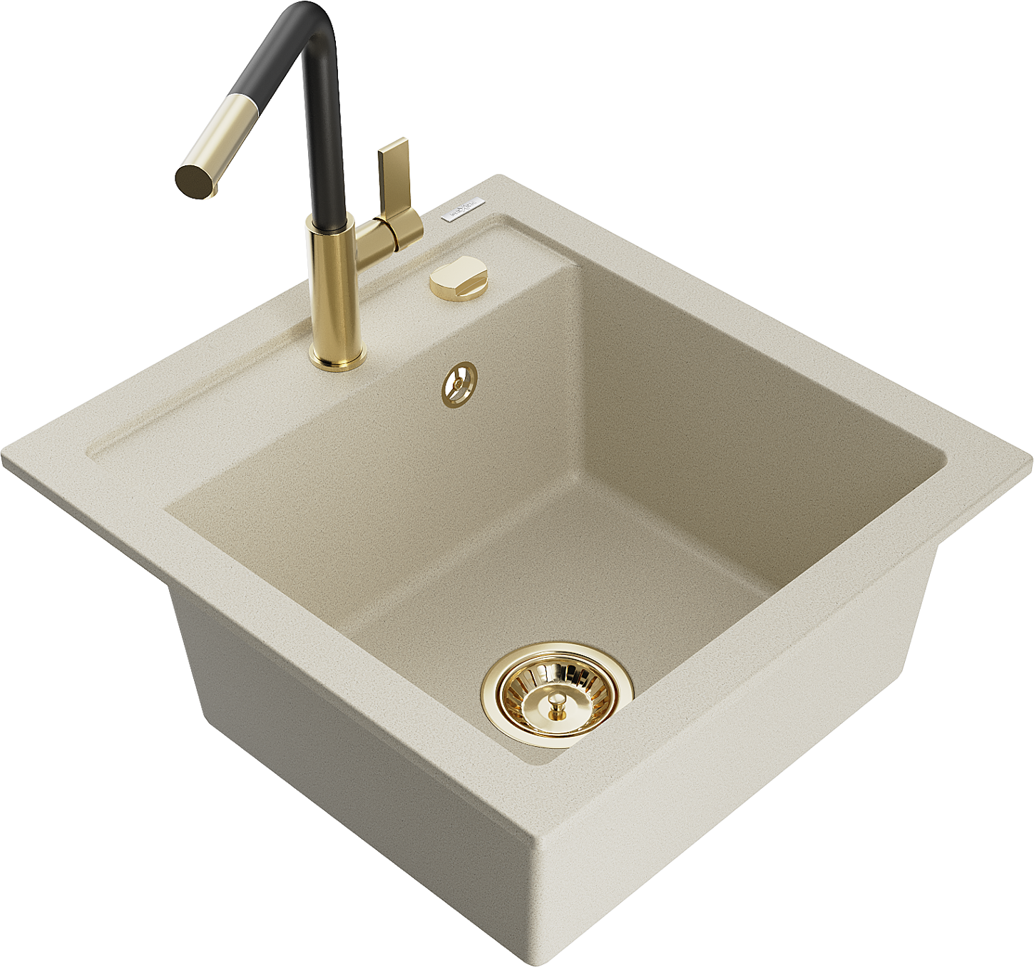 Mexen Vito гранитна мивка с 1 корито с кухненски смесител Flora, бежова