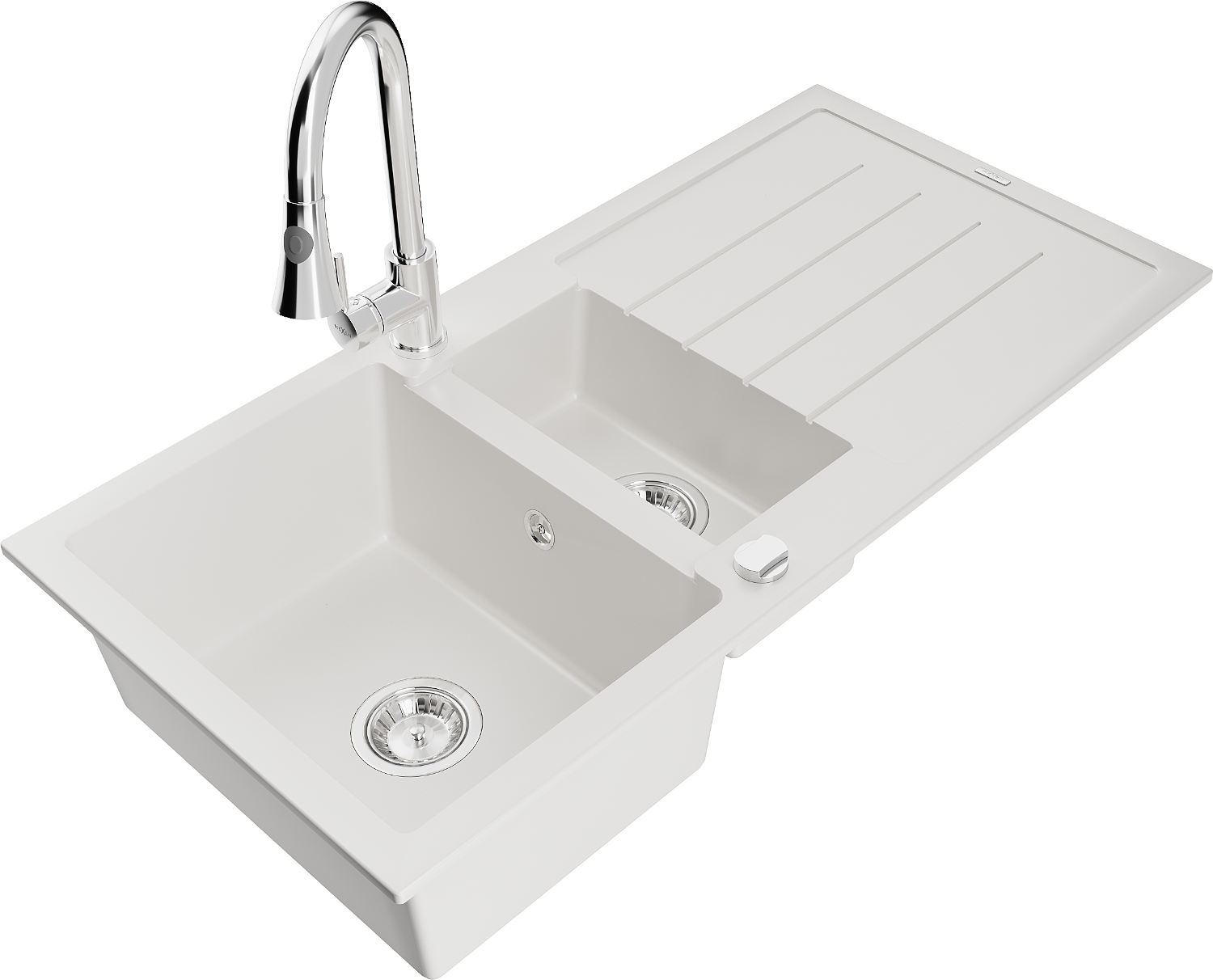 Mexen Andres гранитна мивка 1,5-камерна с отцедник и кухненски смесител Elia, бял - 6515-20-670101-00