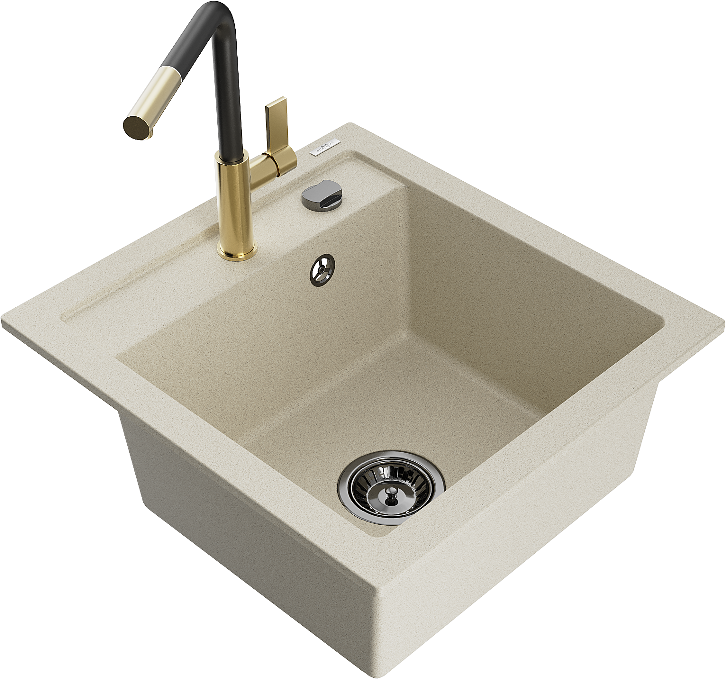Mexen Vito гранитна кухненска мивка с 1 секция и кухненски смесител Flora, бежова - 6503-69-670401-57-B