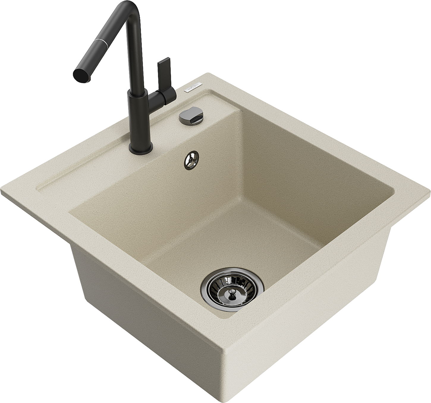 Mexen Vito гранитна кухненска мивка с 1 корито и кухненски смесител Flora, бежов - 6503-69-670401-70-B