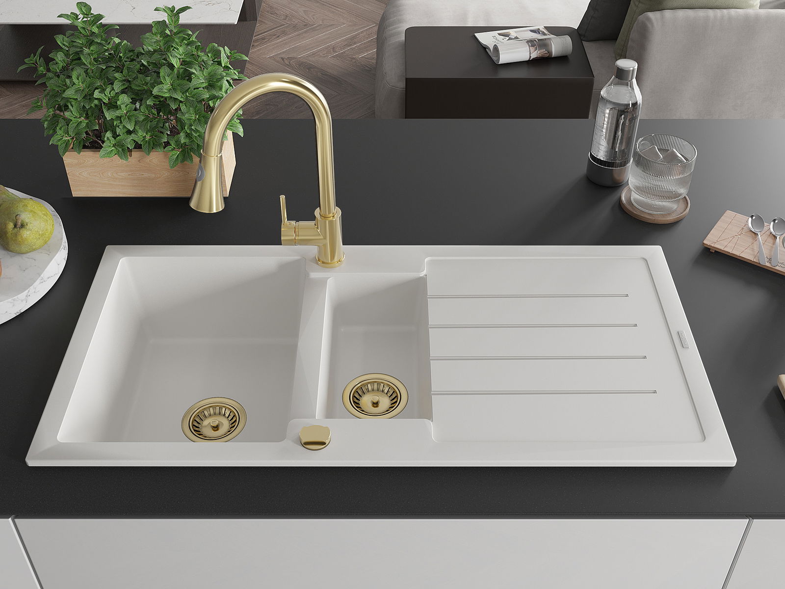Повърхността на мивката е устойчива на петна и обезцветяване, благодарение на които е лесно да се почиства и запазва цвета си за дълго време. Естетически и практически допълващи всяка кухня.