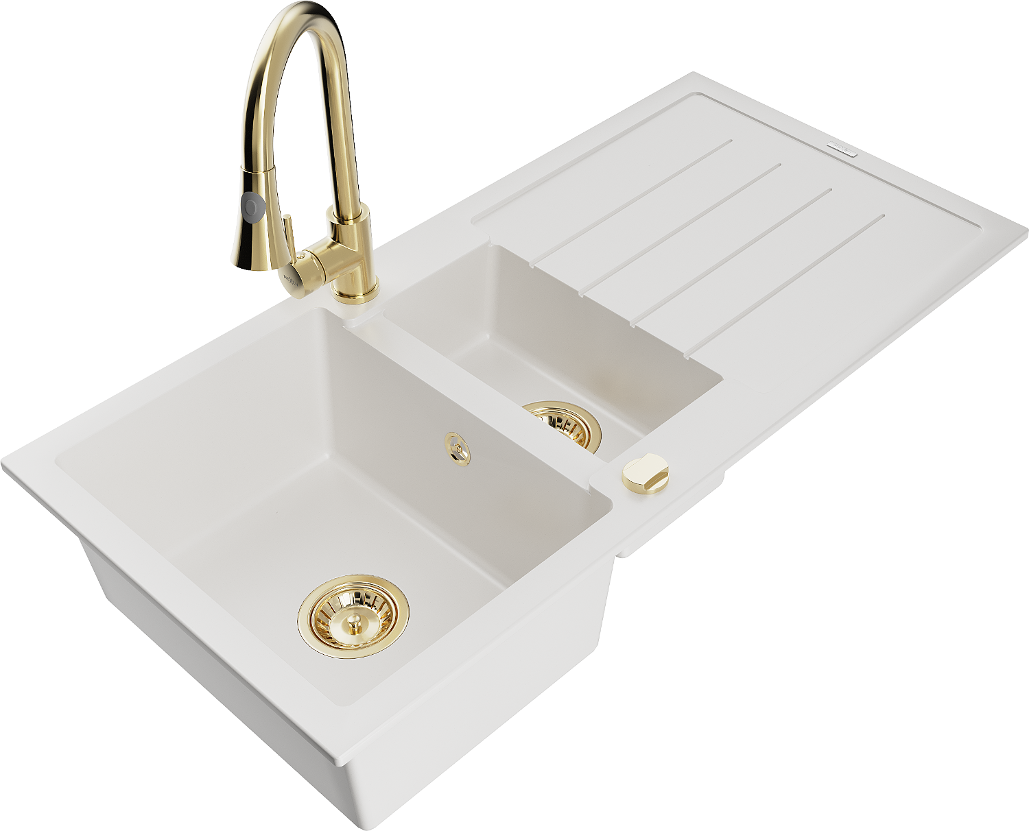 Mexen Andres гранитна мивка 1,5-камерна с отцедник и кухненски смесител Elia, бял - 6515-20-670101-50