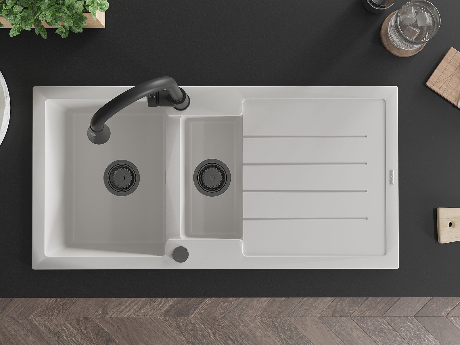 Повърхността на мивката е устойчива на петна и обезцветяване, благодарение на които е лесно да се почиства и запазва цвета си за дълго време. Естетически и практически допълващи всяка кухня.