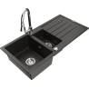 Mexen Andres гранитна мивка с 1,5 камери, с отцедник и кухненски смесител Elia,